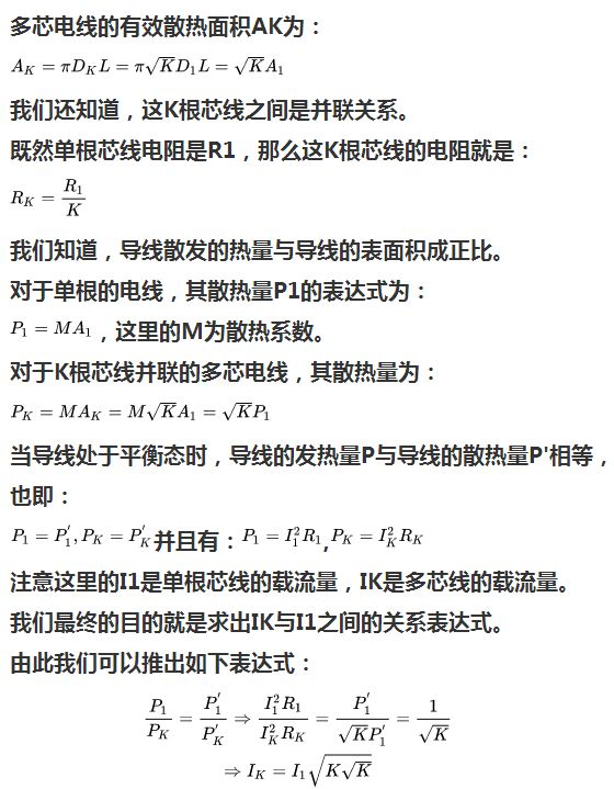 此表就是多芯电线的载流量与单根芯线载流量之间的关系。