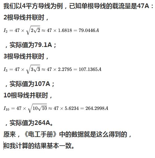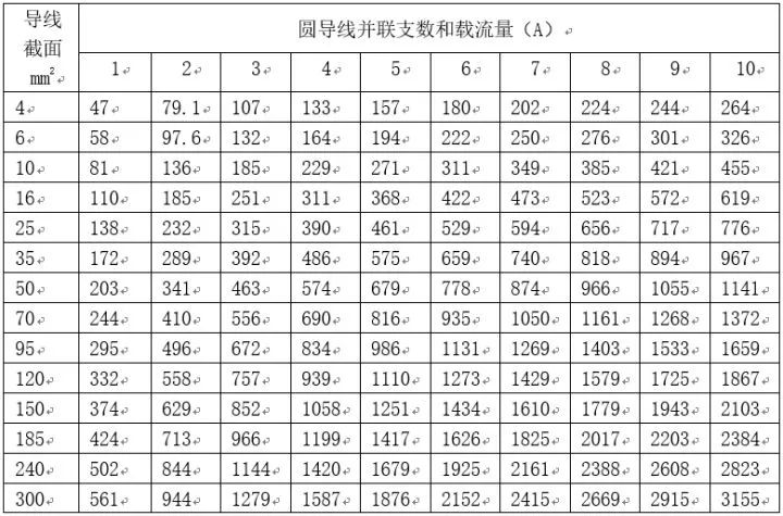来看《电工手册》中的实际表,此表中的数据并非裸导线,而是实际电线参数,如下: