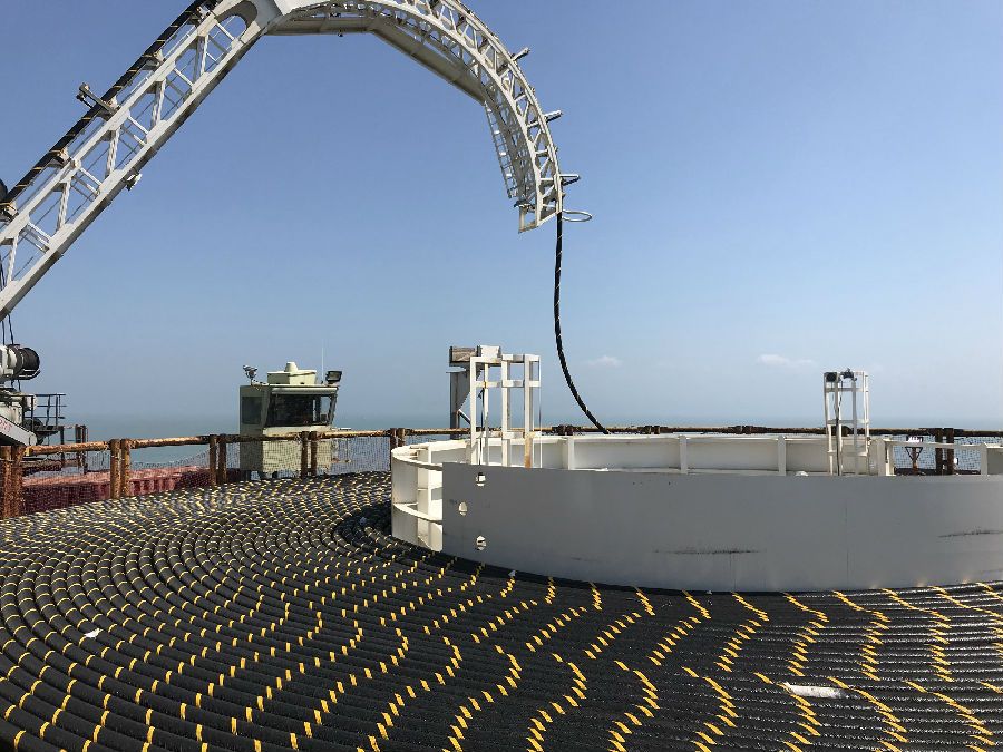 海南联网二回工程第四根海底电缆在海南侧敷设现场 本文图自中国南方电网有限责任公司