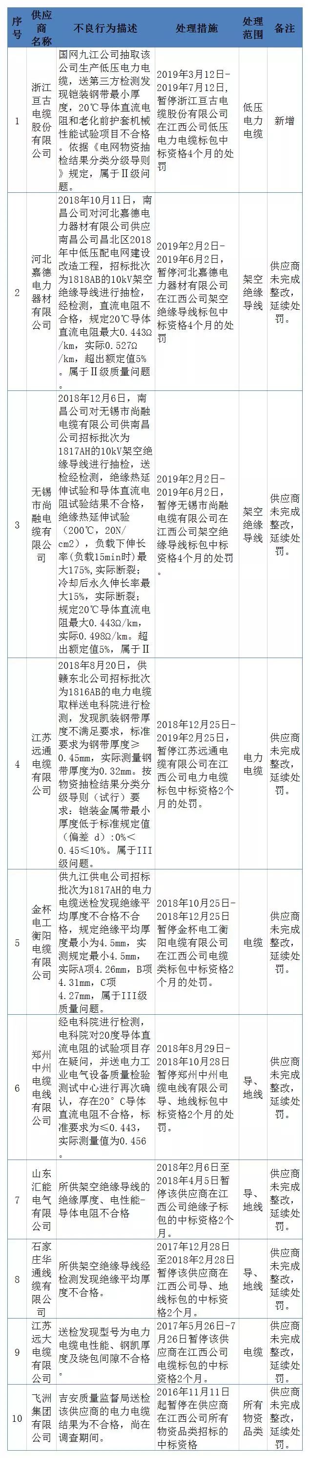 国网江西3月不良供应商通报:10家缆企上榜,包括多家知名企业… - 无图版