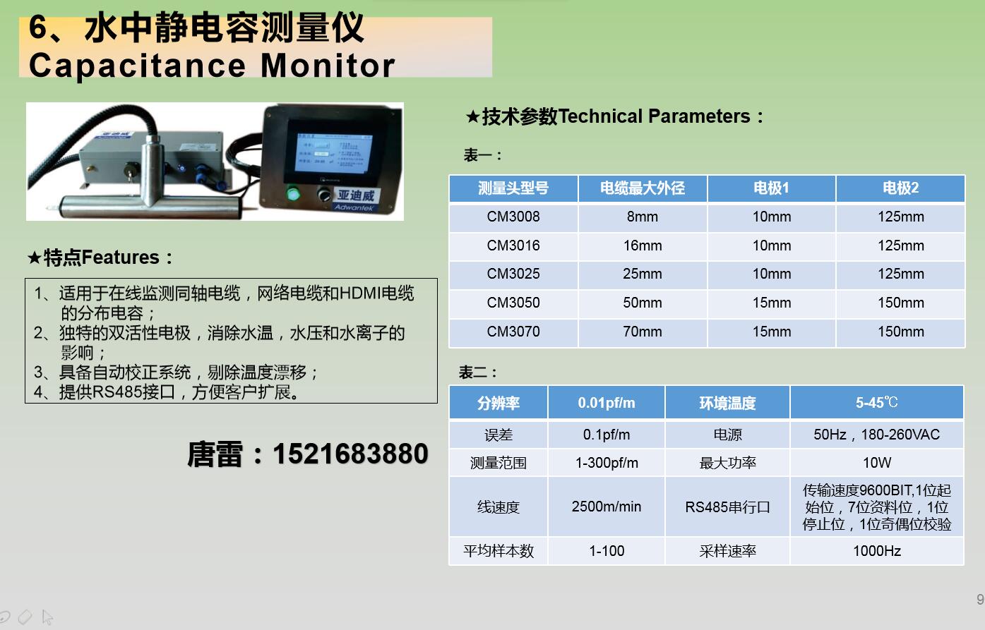 深圳市亚迪威科技有限公司成立于2005年,是一家世界领先的在线测量、监测和控制系统公司,产品广泛应用于电线工业、塑料管材、钢铁工业、造纸和纺织业。公司本着以优良的产品、合理的价格以及热情的服务来赢得广大新老客户的长期信赖。目前客户遍布国内及世界多个国家和地区,客户的满意是我们永恒追求的目标。主要产品包含了红外测径仪、滑石粉静电过粉机、系列高频感应导体加热器(包括大功率和直通式的预热器、高频感应退火机),高频火花机、水中静电容测量仪、电容变化率和稳定因素测量仪、表面凹凸测量仪、计米器及相应的控制系统。控制系统采用了自适应性算法和FFT分析,为客户生产线提供良好的管理方案。