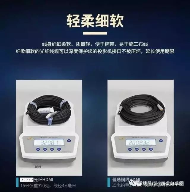 而HDMI铜线最大的缺点是,它无法长距离传输,一旦距离超过10米,就会产生损耗,信号传输速度越快,衰减越大,可能会导致信号丢失或分辨率下降等问题,这是金属传导的“硬伤”,通常来讲,HDMI铜线传输18Gbps的频宽很难超过12米,那传输48Gbps、56Gbps或更大的频宽呢?线材太短,适用范围将会严重受限,对于面积比较大的私人影院或商业、办公场所来说,HDMI铜线显得有些“心有余而力不足”了,这时候需要一款更轻、更细、更长的HDMI线,在这种技术发展和市场需求下,光纤HDMI线应运而生.