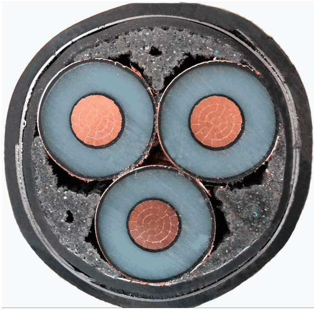 铜带屏蔽工序采用的铜带全部符合国家标准,单芯电力电缆用0.12mm厚铜带,三芯电力电缆用0.1mm厚铜带。