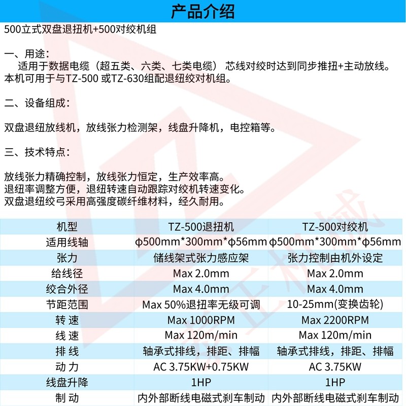 机型 TZ-500高速对绞机+双头立式退扭放线机 TZ-630高速对绞机+双头立式退扭放线机
