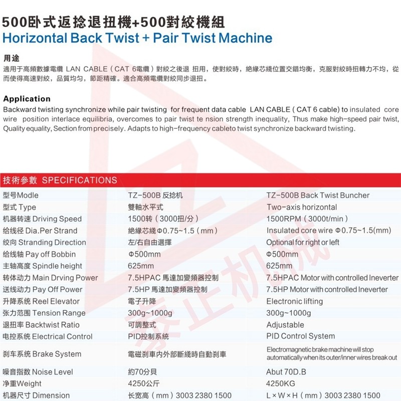 500卧式反捻退扭对绞机 70+40双层共挤押出机 50+35汽车线挤出机 - 无图版