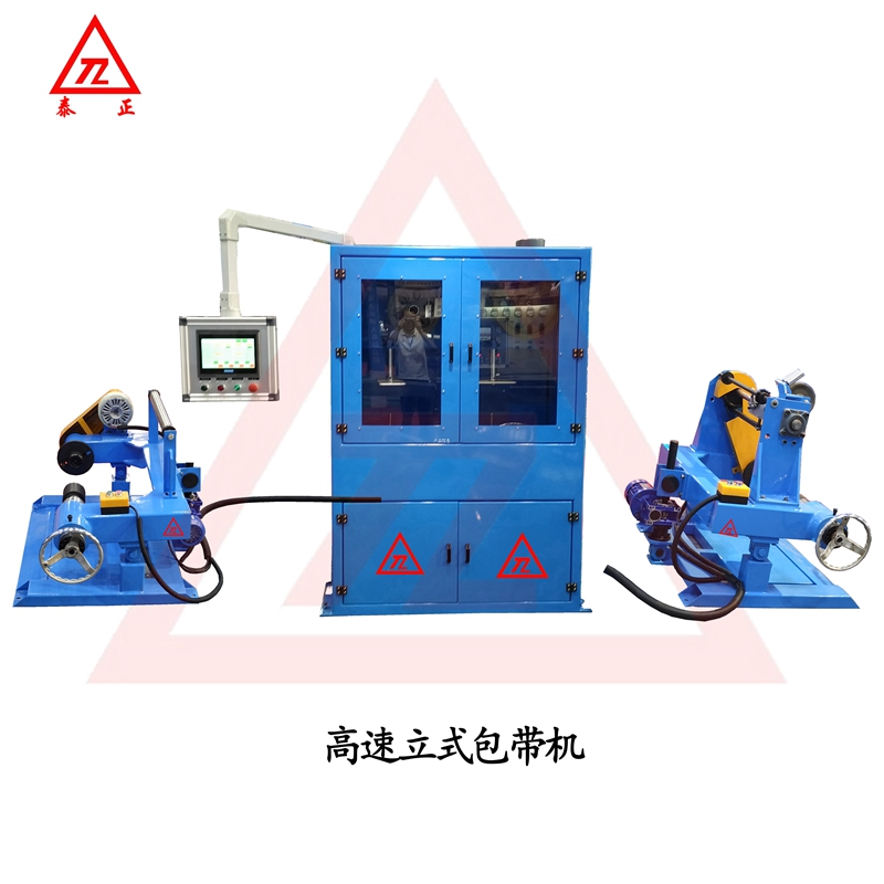 双层塔盘式包带机将包带(云母带、棉纸带、铝箔、聚酯薄膜等)通过转盘旋转,绕包在芯线上,具有两个、三个绕包头。主要用于电线、力缆、控缆、光缆等的绝缘芯线绕包。