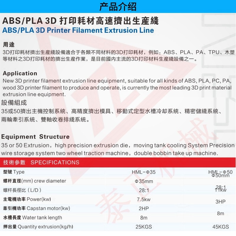 该设备适用ABS/PLA3D打印耗材挤出作业。