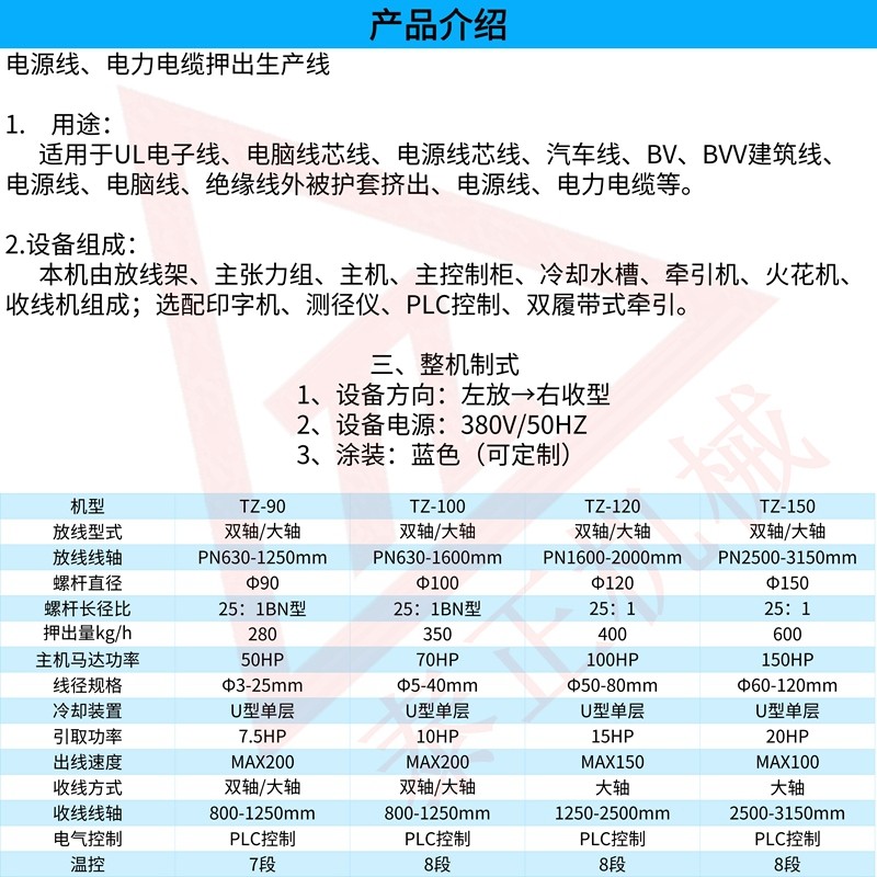 电线电缆网 > 供求信息 > 电源线电力电缆押出机 弓型绞线机 外被护套低烟无卤挤出机 双层包纸机(完整版)