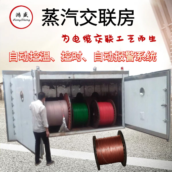 蒸汽交联房设计严格遵循操作安全性高、保温性能好、充气均匀、密封性好、电控准等原则,因此在恒温、恒压状态下要使蒸汽渗透到绝缘单线各层间的缝隙里,已达到均匀交联的效果。