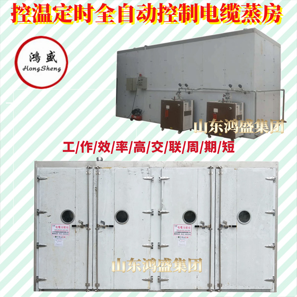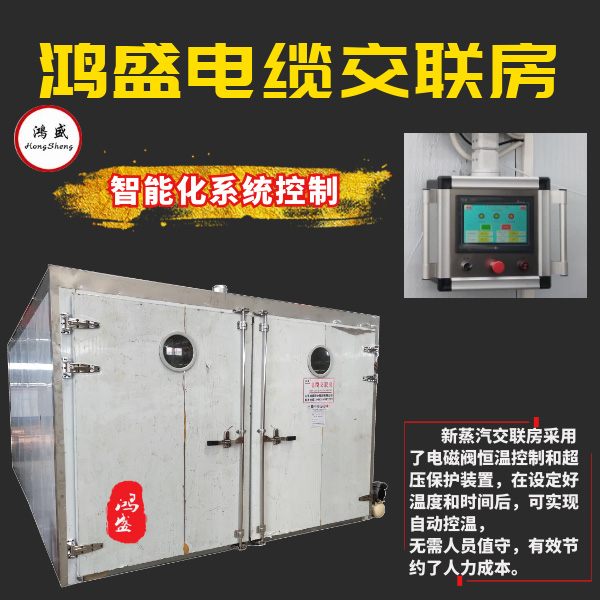 山东鸿盛厨业集团专业生产承压硅烷交联蒸汽交联房、全自动控制电缆蒸汽交联房、控温定时自动报警高压蒸汽房、无人看守安全保障电缆蒸汽房。全自动电缆蒸房主要用于通入高压水蒸汽,使中、低压电缆在高温蒸汽的作用下实现交联。电缆蒸汽房自动控制系统包括温度控制、交联时间控制、进出风风机控制、电磁阀、角座阀及自动报警装置。配备高压蒸汽机,蒸汽压力1-7kg可随意调控,温度170°。全自动电缆蒸房配备内循环风机及排风风机,房内温度上下均衡,到达一定高温自动排出,全自动系统控制。是电缆制造企业新型得心应手设备。