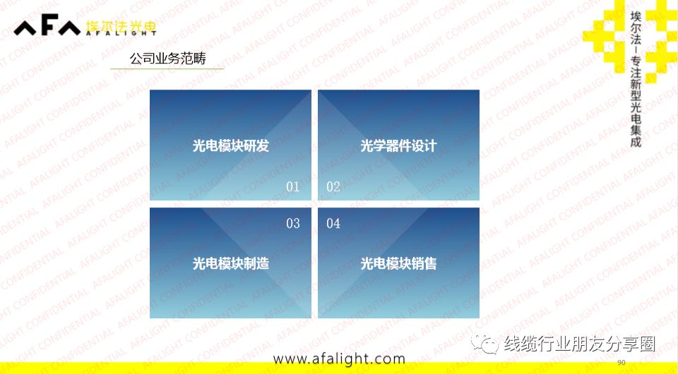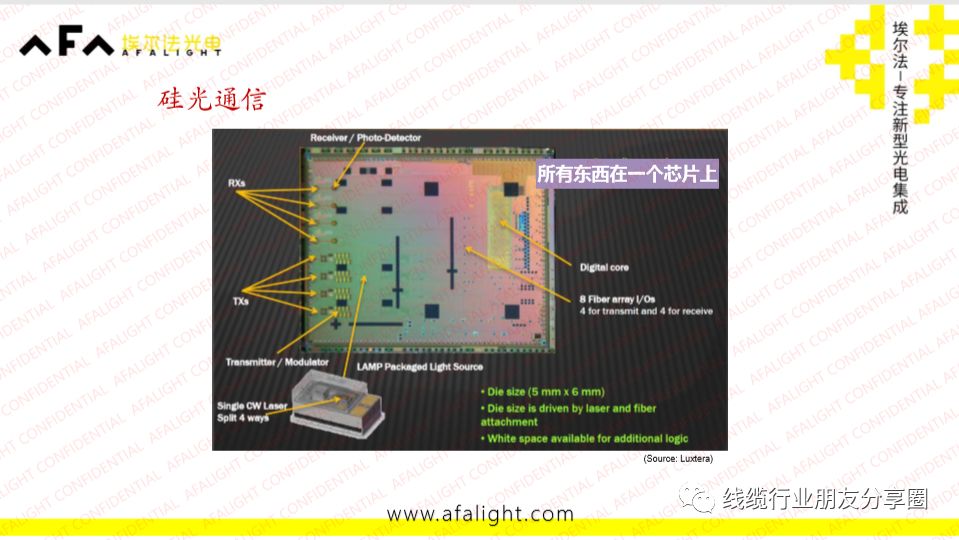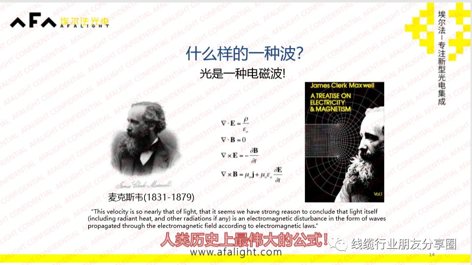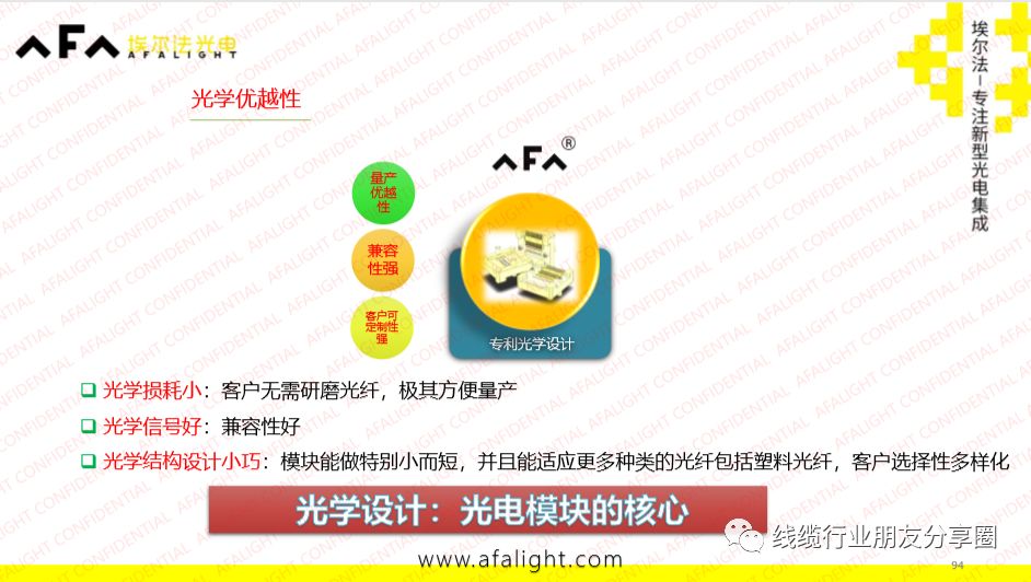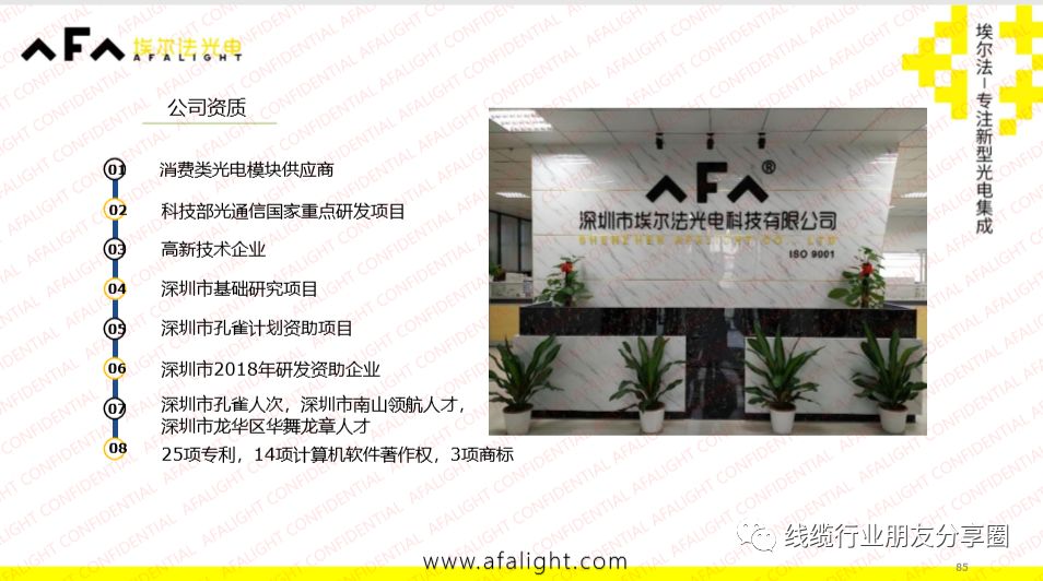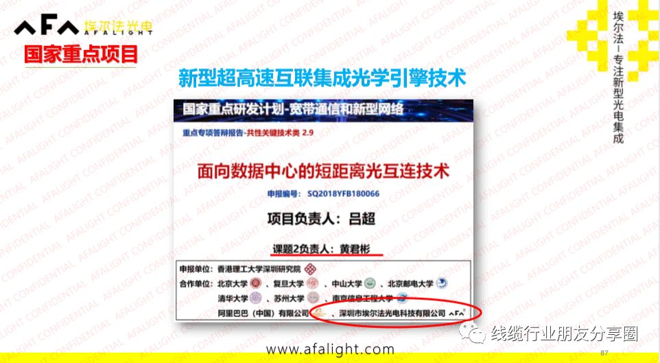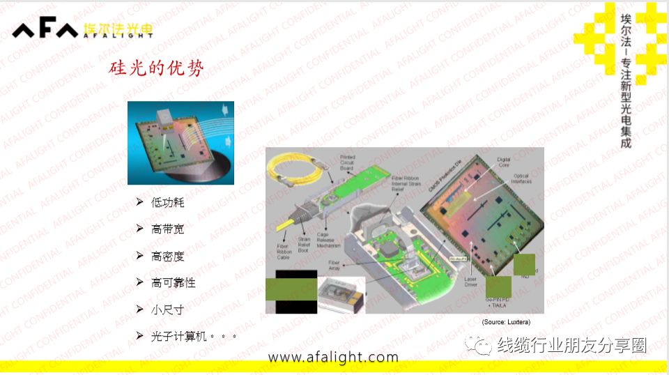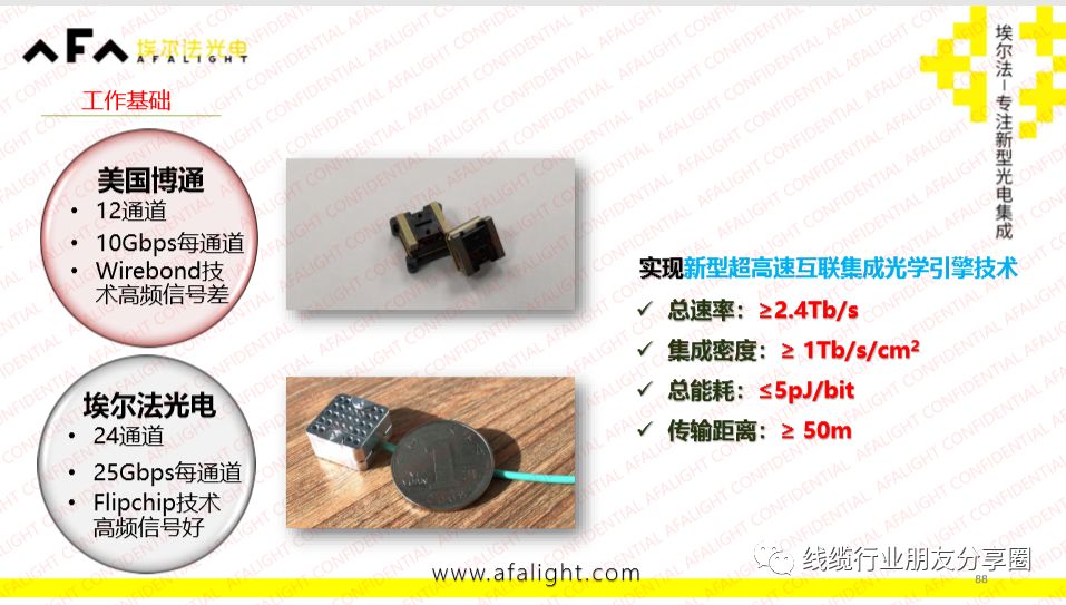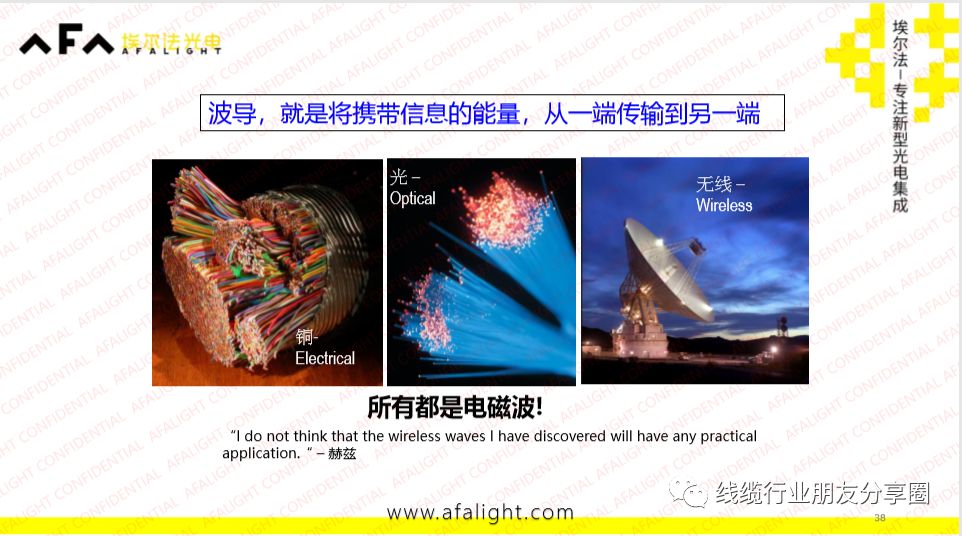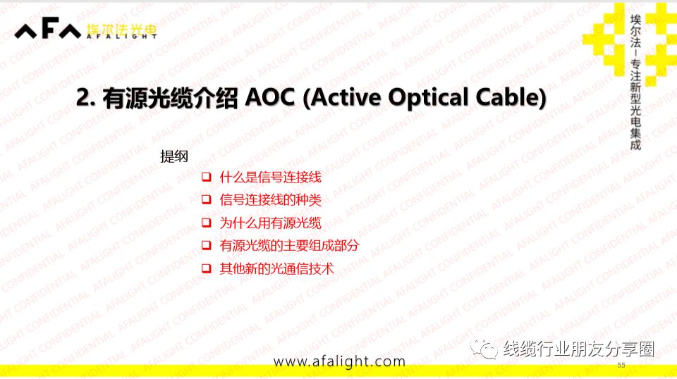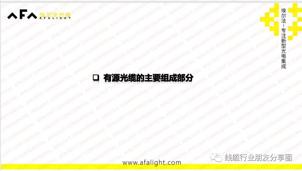 数据时代,高密度、高带宽应用越来越多,此时无源光缆或基于铜线的电缆系统就显得捉襟见肘,为保证传输的稳定性及灵活的应用性,用户迫切需求一种新型产品来作为高性能计算和数据中心的主要传输媒质,在这种情况之下有源光缆产品应运而生,8-10日一场遇见光通讯的技术盛宴在联颖集团新雅电线电缆深圳有限公司胜利召开,埃尔法光电创始人黄君彬董事长无私分享众多精彩干货,经过申请,我们今天分享给大家,需要PPT分享文件的请添加文中客服微信索取即可!或者文末留言邮箱地址,如果您在我们亚太线缆群,对应群主索取即可,谢谢!