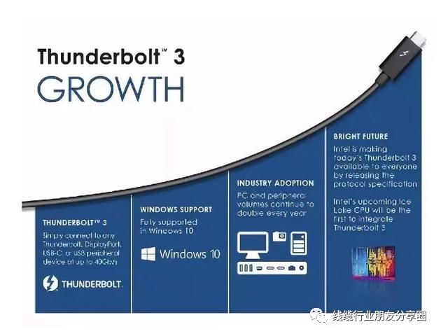 现有的USBType-C已经在一定程度上与雷电3相融合,随着英特尔完全开放雷电技术授权,二者将从协议底层整合在一起,互相受益:USB4可以借助雷电3获得再次翻番、媲美雷电3的传输速度40Gbps,以及高达100W的供电能力;雷电3则可以借助USB,加速自己的普及.