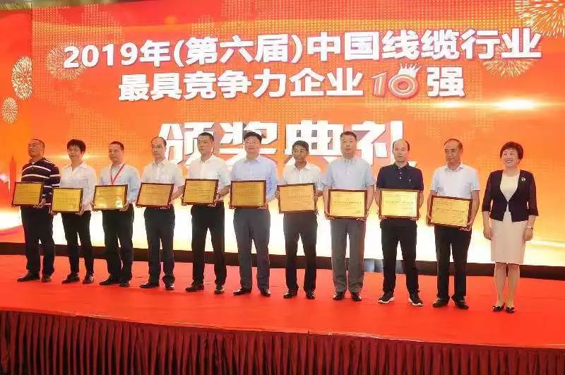 大会还发布了2019年中国线缆行业最具竞争力“十强企业”、“二十强企业”、“百强企业”,并对上榜企业进行了表彰。