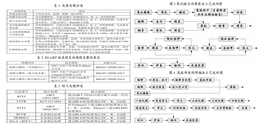 BTTZ矿物绝缘电缆生产工艺有预制氧化镁瓷柱法、氧化镁粉自动灌装法和氩弧焊连续焊接法三种。
