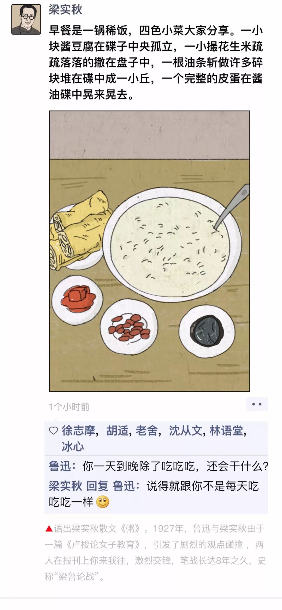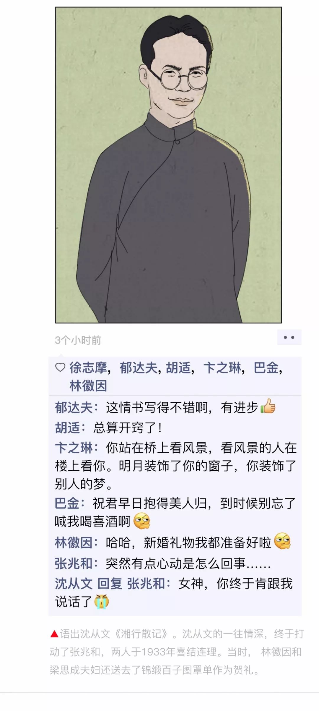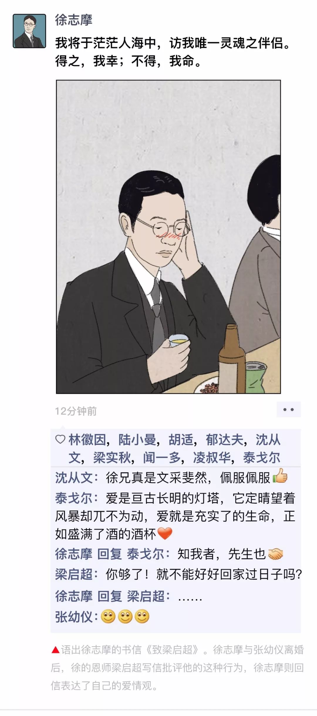 民国时代,虽然只有短短三十余年,却是群星璀璨,大师辈出。徐志摩的风流,林徽因的优雅,陆小曼的妩媚,举手投足间就是一道风景;鲁迅的柔情,胡适的宽厚,李叔同的慈悲,钱钟书的专一,至今仍让人心生敬意。假如,民国时代就有了朋友圈,这些人又会碰撞出怎样的火花呢?褪去时代的滤镜,大师们也不过是凡人,他们的七情六欲、柴米油盐,与我们其实并无二致。今夜,就让十点君带你穿越回民国,走近大师们的日常生活,体味那个时代不一样的风情吧。