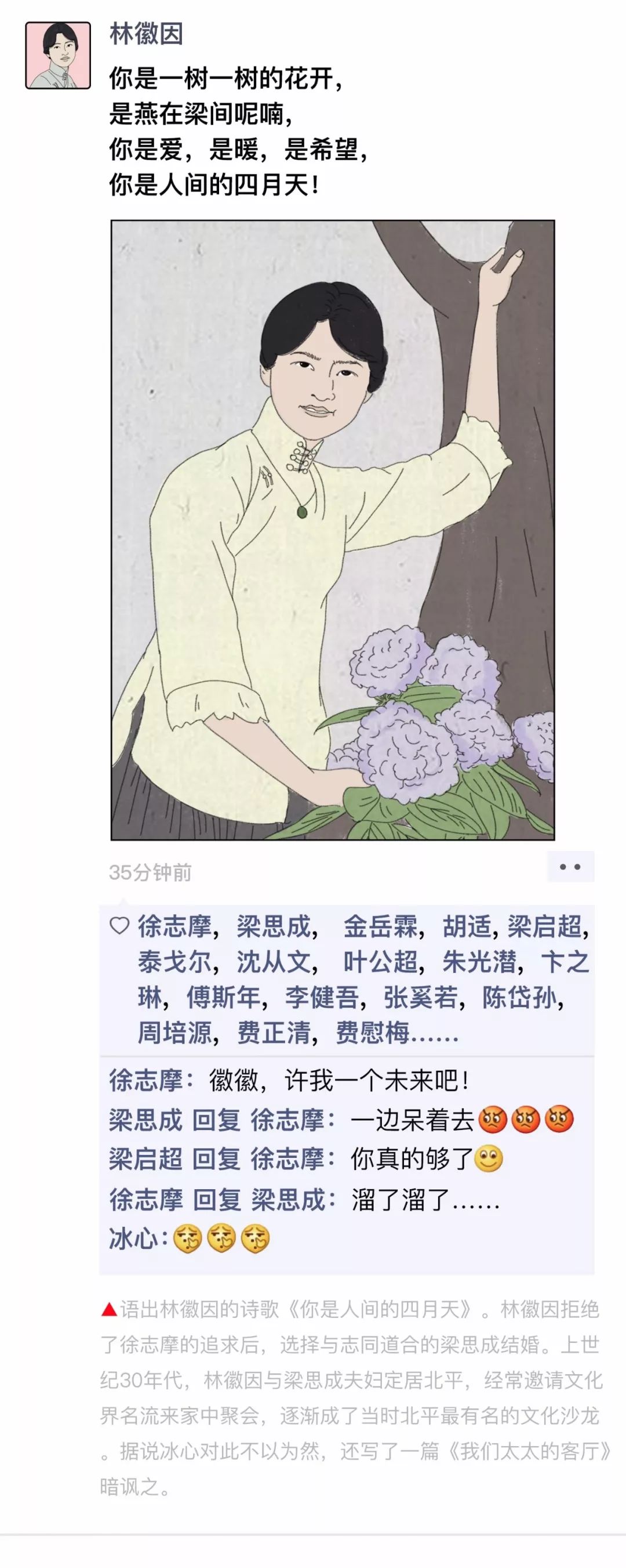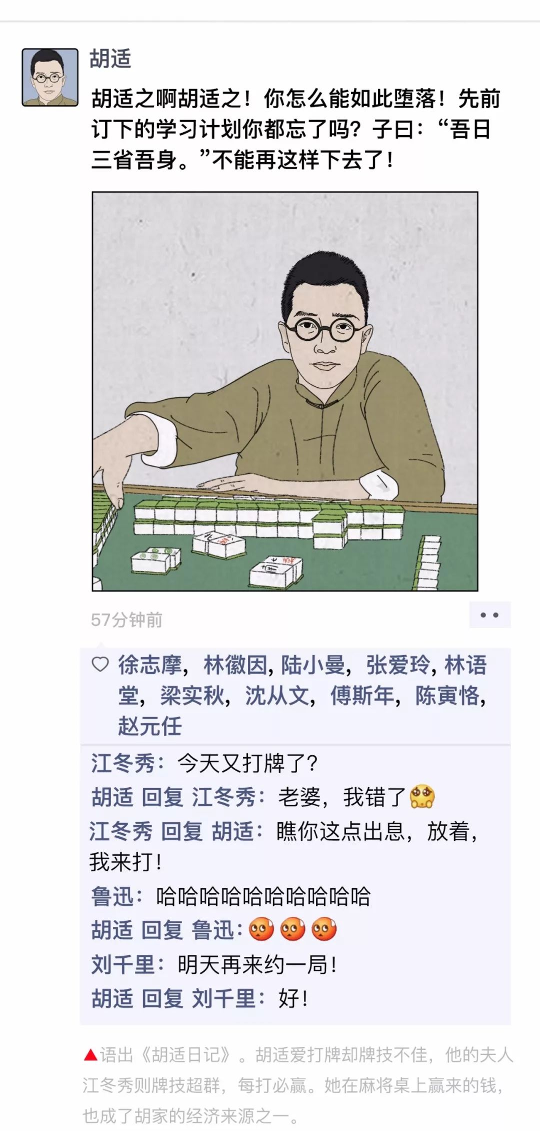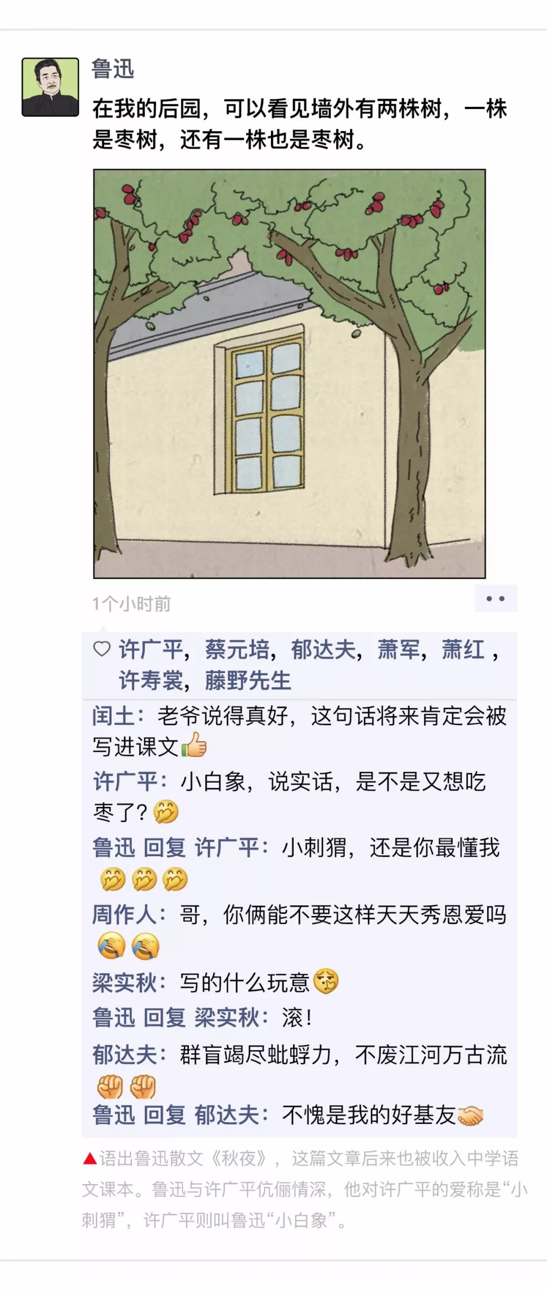 民国时代,虽然只有短短三十余年,却是群星璀璨,大师辈出。徐志摩的风流,林徽因的优雅,陆小曼的妩媚,举手投足间就是一道风景;鲁迅的柔情,胡适的宽厚,李叔同的慈悲,钱钟书的专一,至今仍让人心生敬意。假如,民国时代就有了朋友圈,这些人又会碰撞出怎样的火花呢?褪去时代的滤镜,大师们也不过是凡人,他们的七情六欲、柴米油盐,与我们其实并无二致。今夜,就让十点君带你穿越回民国,走近大师们的日常生活,体味那个时代不一样的风情吧。
