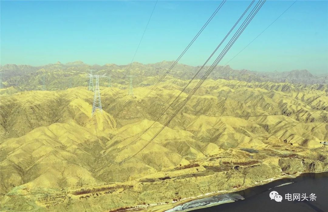 ▲准东—皖南±1100千伏特高压直流输电工程在甘肃跨越黄河。