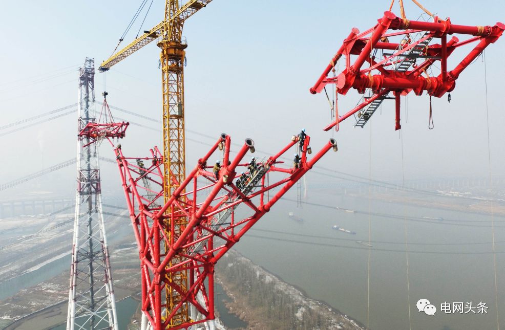▲准东—皖南±1100千伏特高压直流输电工程在安徽跨越长江。