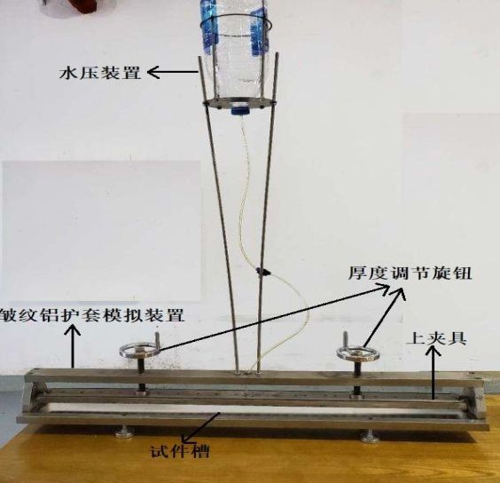 此试验方法的特点是既考核了半导电阻水带的阻水特性,又考核了阻水带膨胀特性与阻水速度试验装置上下夹具之间距离的关系特性,这个关系特性给电缆结构设计中铝护套轧纹深度控制提供了参考依据。