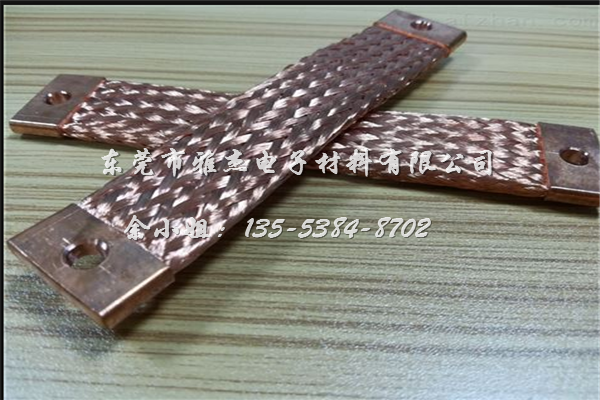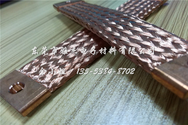 导线材料:铜编织线、铜编织带、镀锡铜编织线、镀锡铜编织带、铜绞线。铜编织带是用无氧铜丝编织,线经0.10mm,0.12mm,0.15mm单丝,根据客户要求,柔软度,通电强度等特制而成。