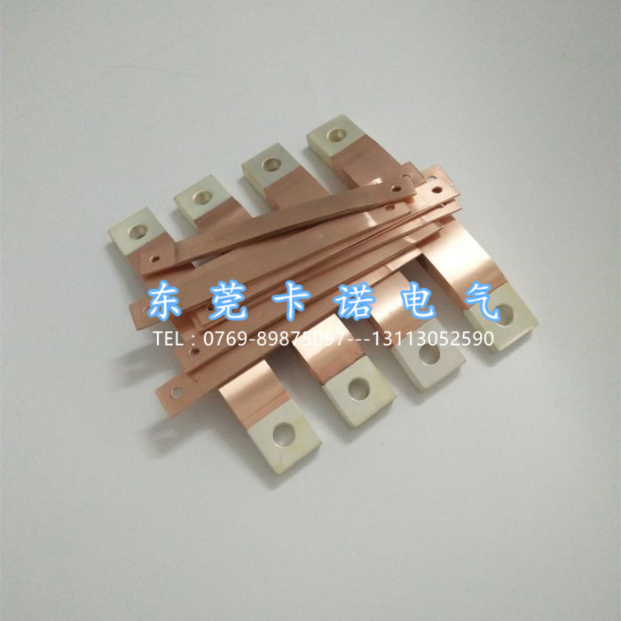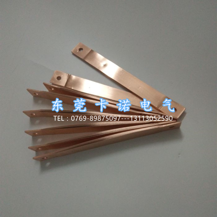 铜箔软连接采用T2铜箔,经分丝成各种宽度,通过高分子扩散焊或氩弧焊工艺进行熔压焊接,整体或表面可镀银镀锡处理。