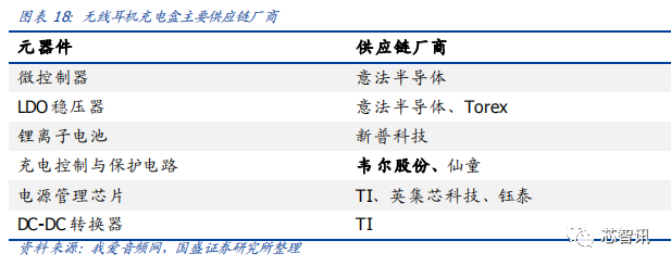 在TWS耳机充电盒的主要元器件供应商主要是一些国外厂商,比如ST(意法半导体)、TI等。