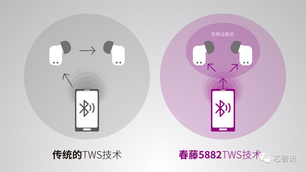 不过,市场上也有一些其他的芯片厂商开始另辟蹊径,通过其他的技术方案来实现不分主副耳机的“双发”的效果,今年5月,紫光展锐推出的TWS耳机芯片春藤5882就是如此。