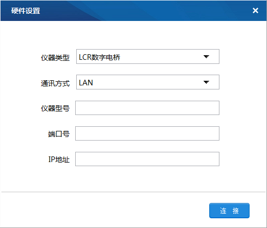 点击进入测试首先会看到仪器连接界面。界面会显示当前产品测试需要使用的仪器列表,用户需要根据不同产品的测试项目选择相应的设备。软件会默认最后一次的配置信息,如有变动,需要用户进行手动更改。用户可保存每次变更后的配置信息,以便下次直接调用。配置完成后,点击连接按钮,软件会提示仪器连接状态。