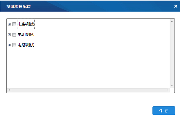 测试项目选择界面,用户在测试前需要选定被测产品以及相应的测试项目。