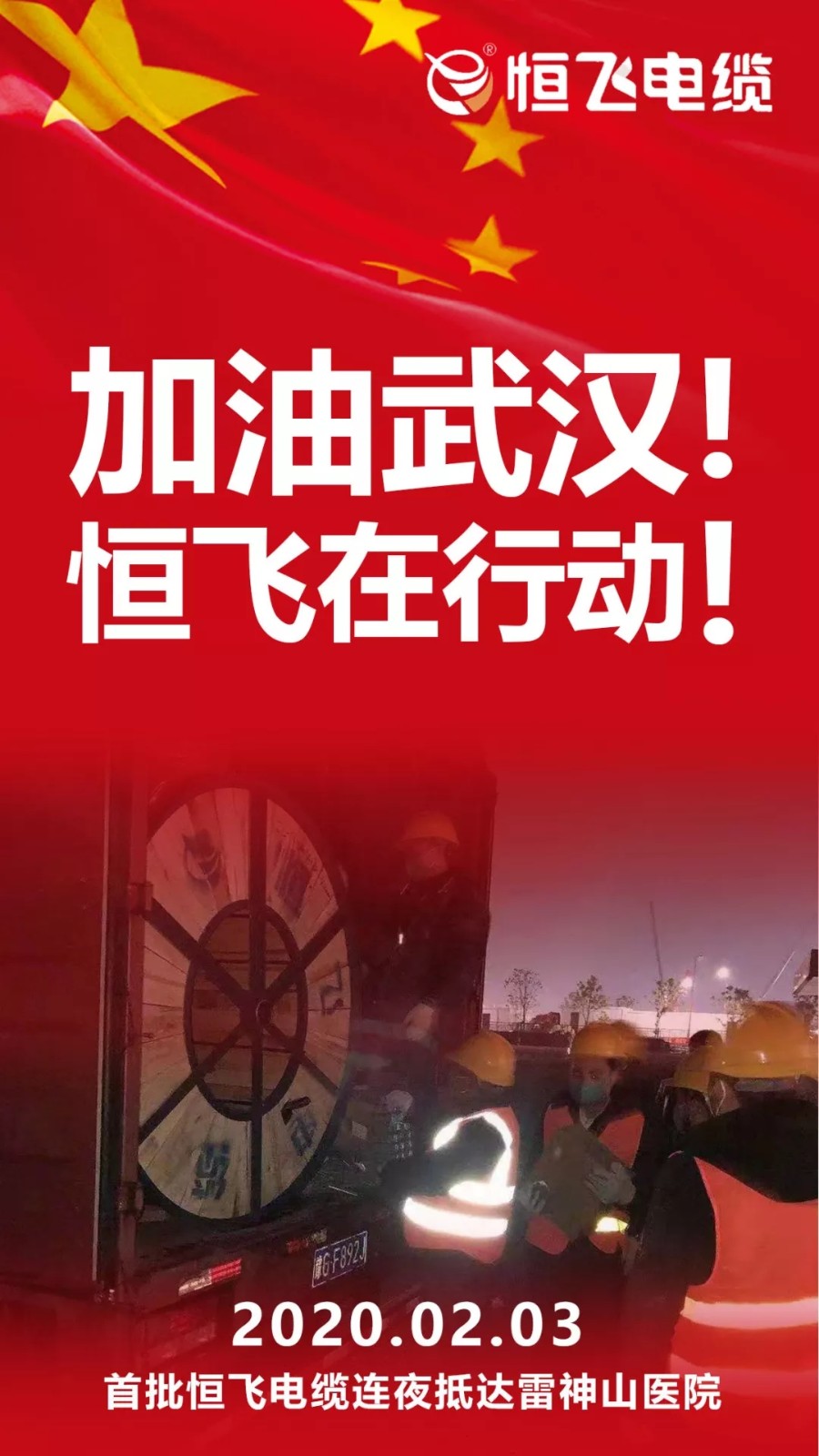 恒飞电缆连夜奔赴雷神山医院,助力武汉,加油中国! - 无图版