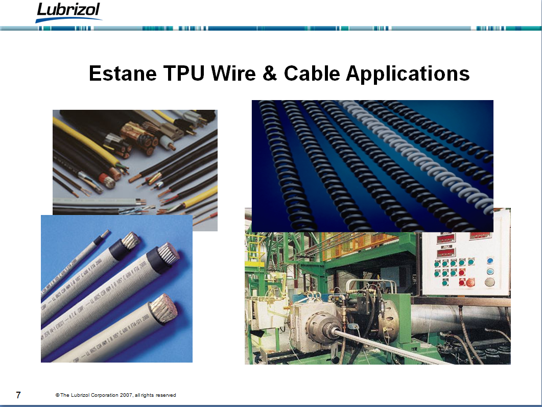 本公司经销代理路博润和亨斯迈电线电缆用TPU颗粒,有聚酯和聚醚无卤,有卤,阻燃和非阻燃料,硬度从60A-70D不等;哑光和亮面都有;同时本公司还自产线材外被TPU料,性能稳定,可取代相应的进口TPU线材料;性价比高,质量保证!另售各种颜色线缆用的TPU色母,分散性好,不容易褪色!欢迎各位咨询试料!李生18682315383