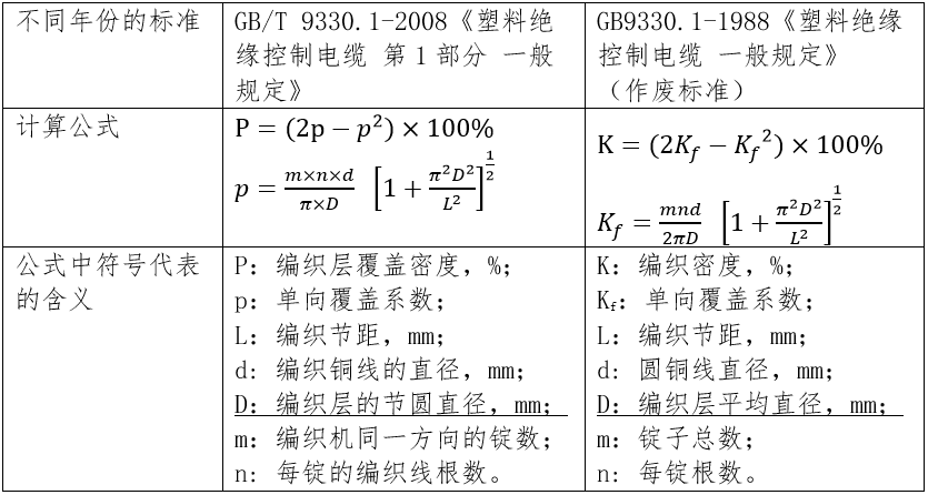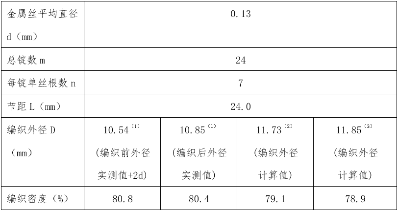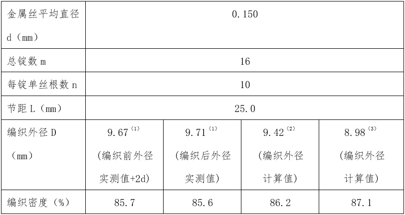 (2)采用不同标准规定的假设直径计算方法,计算的编织外径,然后再计算编织密度,之间有差异,主要是计算外径与选择的计算方法有关;