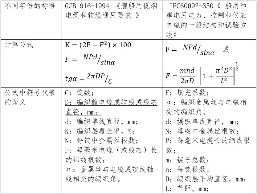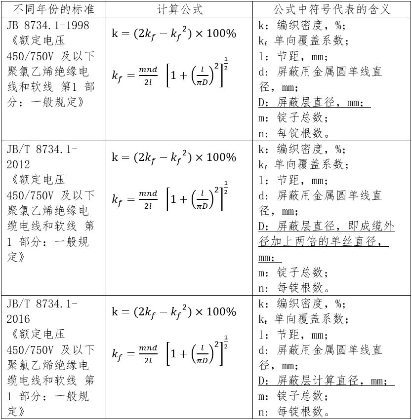 金属丝编织结构在许多电线电缆产品中得到运用,对于特殊场合下需要具有电磁屏蔽功能或具备特殊机械性能的情况下,设计电缆结构是都会采用金属丝编织单元,但在不同的产品标准或测试方法标准中对计算编织密度的有些参数提法要求不一致,以致在测量过程中产生混淆,在此我们罗列有关标准中的提法并进行讨论。 一、相关标准编织密度的计算公式的信息 1. 塑料绝缘控制电缆 新、老版本编织覆盖密度计算公式一致,单向覆盖系数计算公式中,老版本分母中多了一个2,是新、老版本对m(编织锭数)的定义差异造成的,2008年版本m为编织机同一方向的锭数,而1988版本m为锭子总数,刚好相差2倍。 我们来分析一下新、老版本中对D的定义差异,1988年版本D定义为编织层平均直径,可以理解为编织层的平均外径(含编织铜丝)吗?但这个D是测量值还是计算值,标准没有说明;2008年版本D定义为编织层的节圆直径,这个节圆直径如何理解?这个节圆直径D是测量值还是计算值,标准也没有说明。 2. 塑料绝缘电线电缆 JB/T 8734.1《额定电压450/750V 及以下聚氯乙烯绝缘电缆电线和软线 第1 部分:一般规定》这个标准最近二十多年修改过三次,每次的屏蔽标准密度计算公式没有发生变化,唯一变化的是屏蔽层直径的定义有变化:JB 8734.1-1998版本中D定义为“屏蔽层直径”;JB/T 8734.1-2012版本中D定义为“屏蔽层直径,即成缆外径加上两倍的单丝直径”;JB/T 8734.1-2016版本中D定义为“屏蔽层计算直径”。 JB 8734.1-1998版本中D定义为“屏蔽层直径”,标准中没有阐述“屏蔽层直径”是测量值还是计算值,可以理解为屏蔽层的外径吗? JB/T 8734.1-2012版本中D定义为“屏蔽层直径,即成缆外径加上两倍的单丝直径”,这里已经明确了是屏蔽层的外径,但没有明确説明“成缆外径”是计算值还是测量值。 JB/T 8734.1-2016版本中D定义为“屏蔽层计算直径”, 但没有説明计算方法是什么。 3. 舰船电缆 GJB1916-1994版本中定义D为“编织前电缆或软线或线芯直径”,没有説明是测量值还是计算值,IEC60092-350标准中定义D为“编织层平均直径”,可以理解为编织层的平均外径(含编织铜丝)吗?但这个D是测量值还是计算值,标准也没有说明。 4. EN试验方法标准 EN50306-3:2002标准中Φ定义为“编织层下成缆直径加上两倍的单丝标称直径”,这里已经明确了是屏蔽层的外径,但没有明确説明“成缆直径”是计算值还是测量值。 从上述内容我们可以看出不同标准对编织屏蔽直径的定义都不太一样,当进行检测时各人的理解也有所不同,给检测结论带来一定的争议。另外绝大部分编织屏蔽层材料都使用铜导体,企业在进行原材料控制时屏蔽编织密度也控制的比较严,可能会出现同一个样品不同的人、不同的检测机构测出的编织密度出现不一样的结果,甚至出现合格与不合格的情况,因此规定D的定义和测试方法对检测机构或制造企业都很重要。