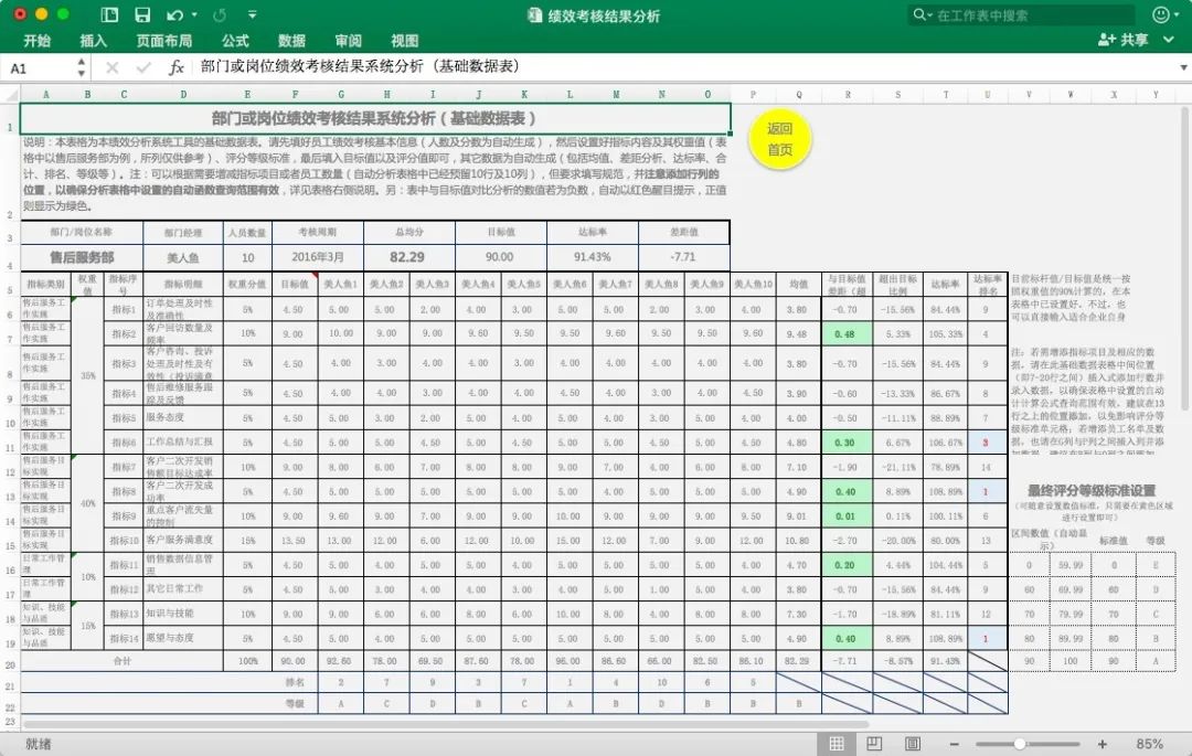 《绩效考核全自动分析Excel模板》