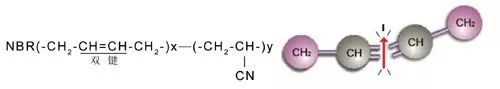 臭氧会与NBR的双键发生反应并使化学链断裂,从而使到NBR发生降解。