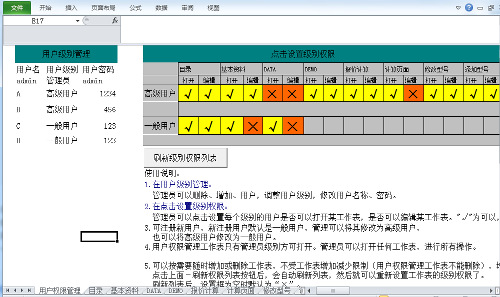 非常感谢这位朋友的反馈,可以做到多人共享登陆操作且可设置各个帐户的打开或编辑权限(不知道是不是你想要的功能,实现的效果图类似下图),但基于EXCEL软件的局限性,没有金蝶等专业系统的多个用户之间审核流程功能(这也是用EXCEL做系统软件的最大弊端),因而此软件的定位就是作为这类软件的必要补充而不是代替这些软件,这样就能最大发挥各自的优势。