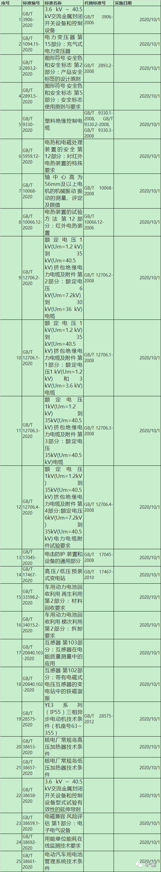 1据国家标准委网站消息,近日,国家市场监督管理总局(国家标准化管理委员会)批准发布24项电力电气相关国家标准。详情如下: