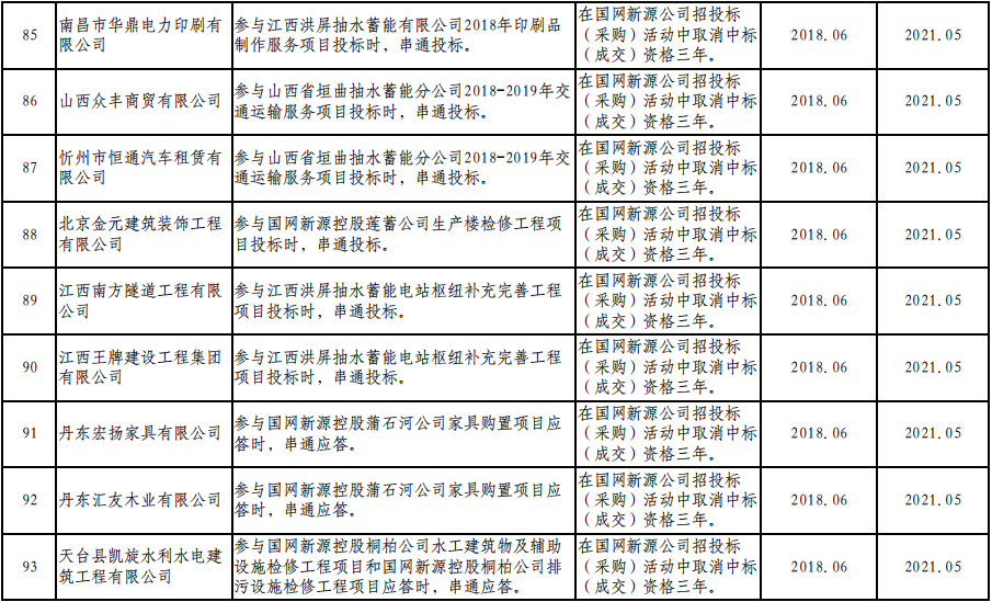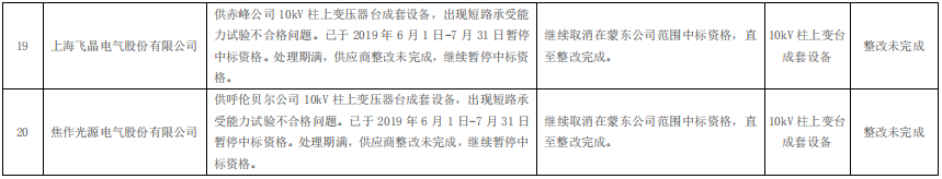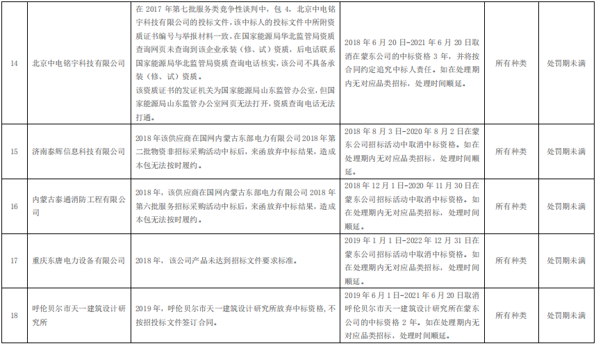 三、国网蒙东电力公司关于供应商不良行为处理情况的通报(2020年3月)