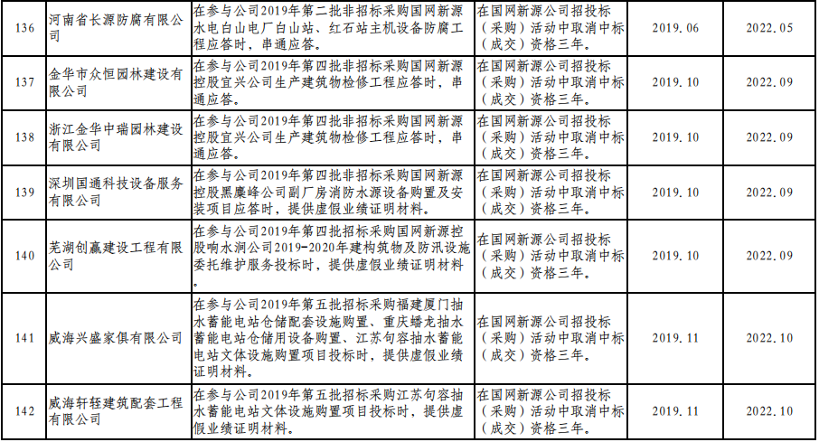 十、国网新源控股有限公司关于供应商不良行为处理情况的通报(2020年3月)
