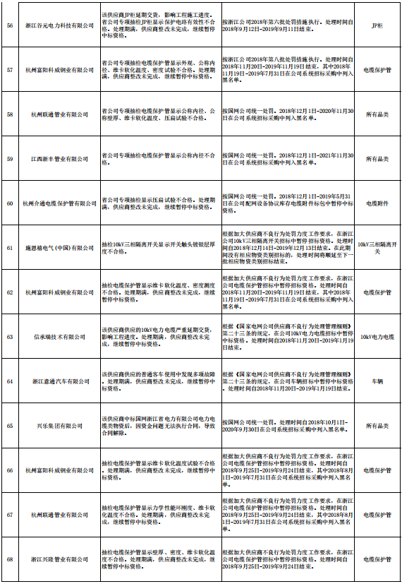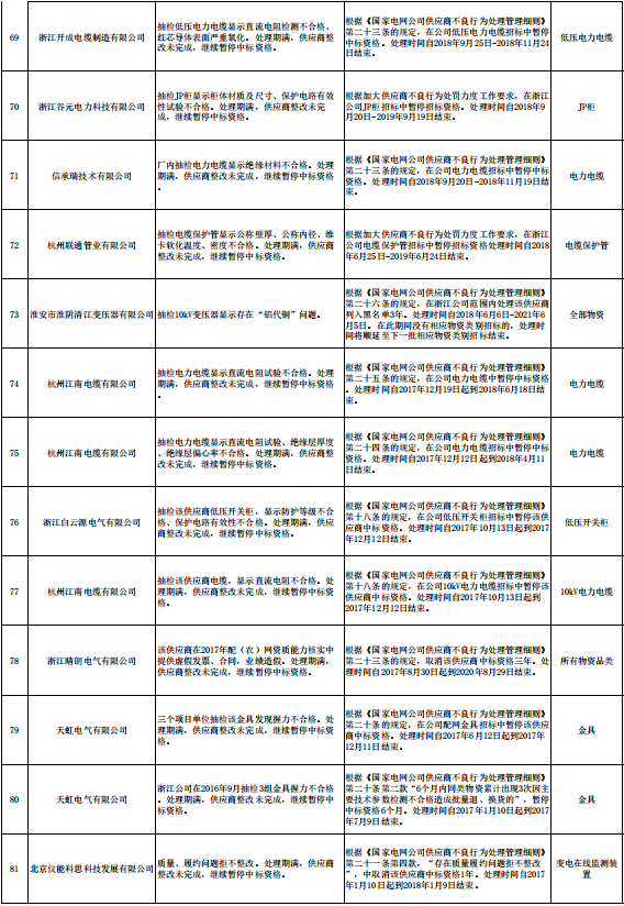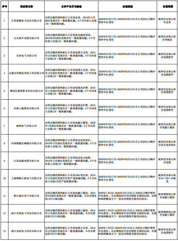 十一、国网浙江省电力有限公司关于供应商不良行为处理情况的通报(2020年3月)