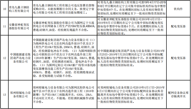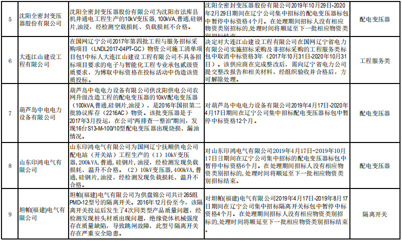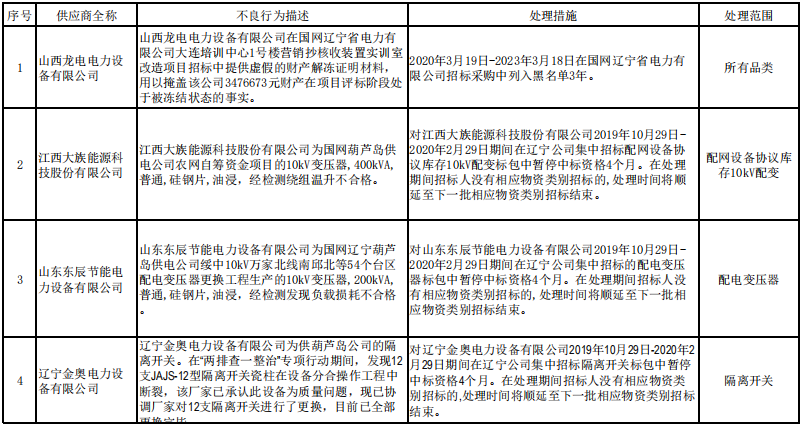 十二、国网辽宁省电力有限公司关于供应商不良行为处理情况的通报(2020年3月)