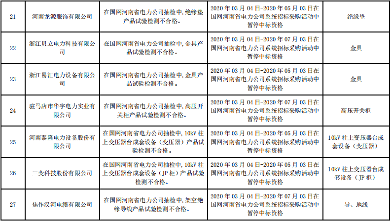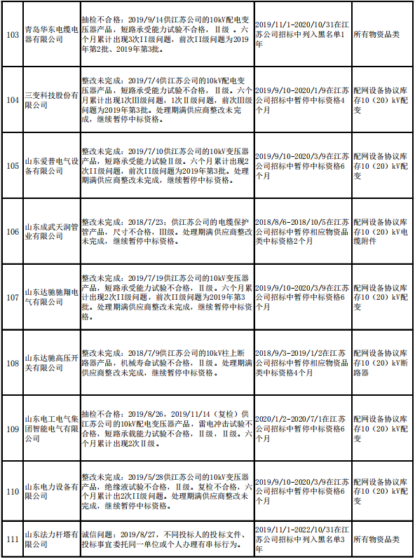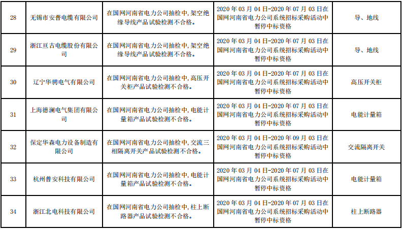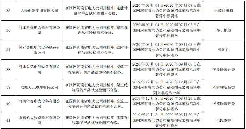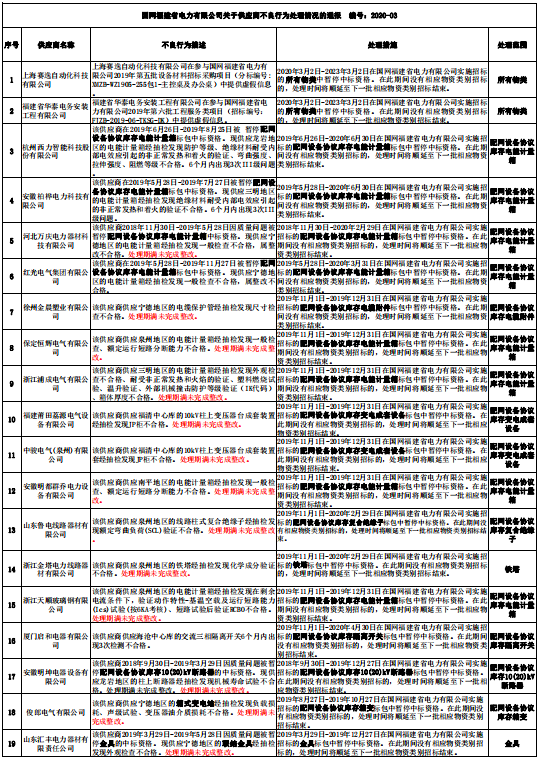 2020年3月份国家电网“黑名单”汇总,哪些企业中招了? - 无图版