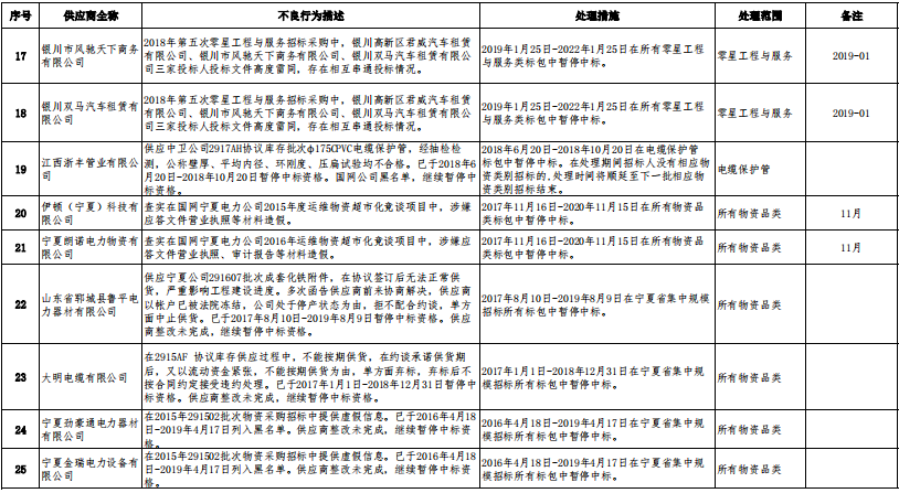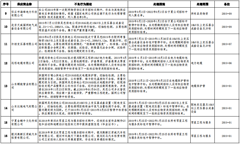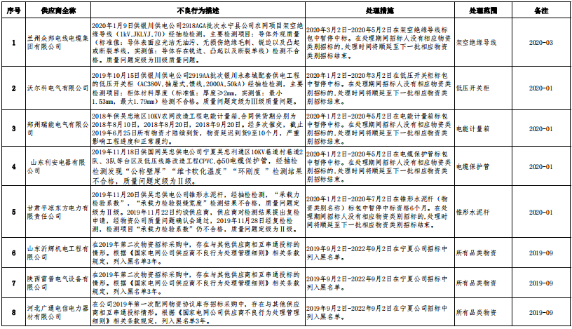 二、国网宁夏电力有限公司关于供应商不良行为处理情况的通报(2020年03月)