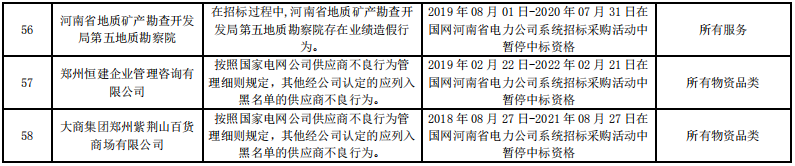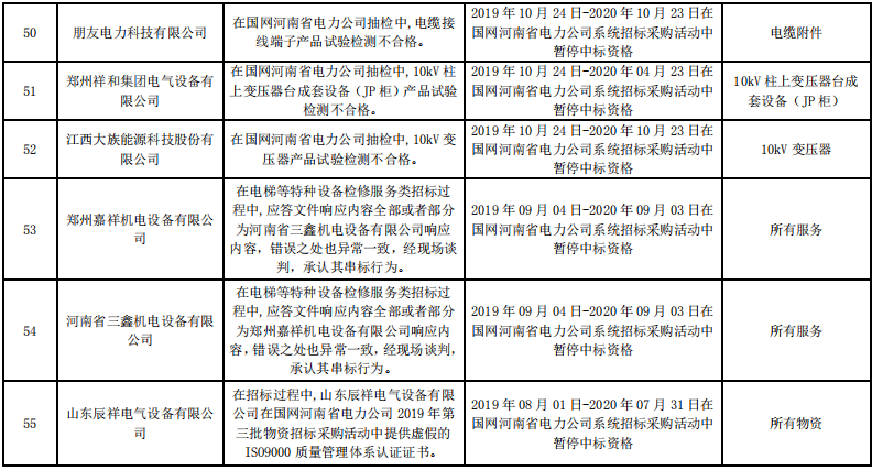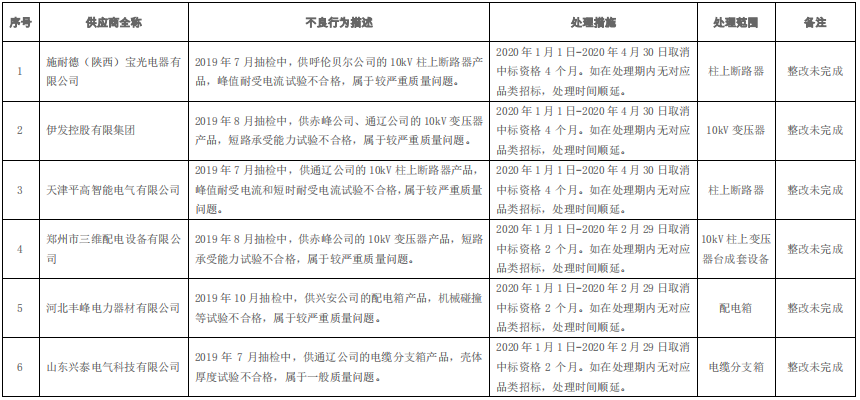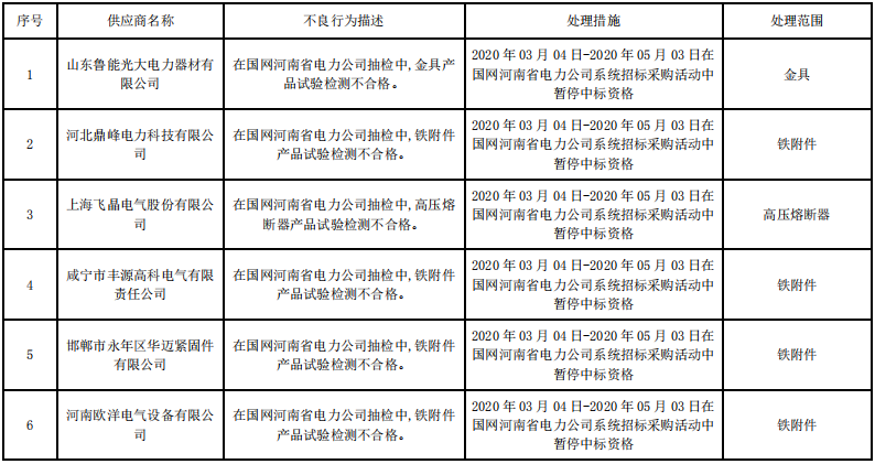 五、国网河南省电力公司2020年第一批供应商不良行为处置通报