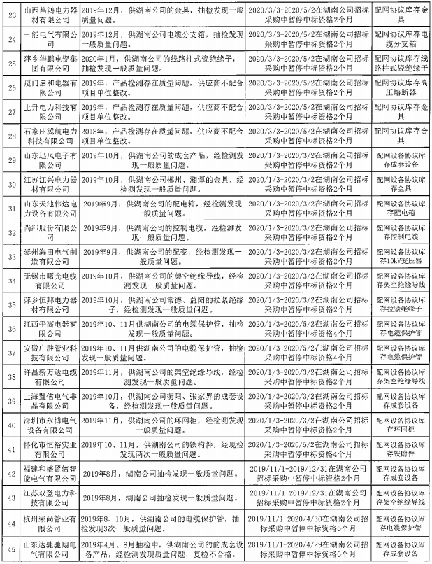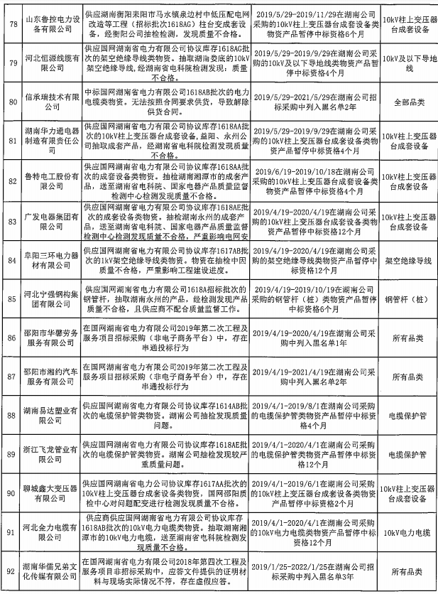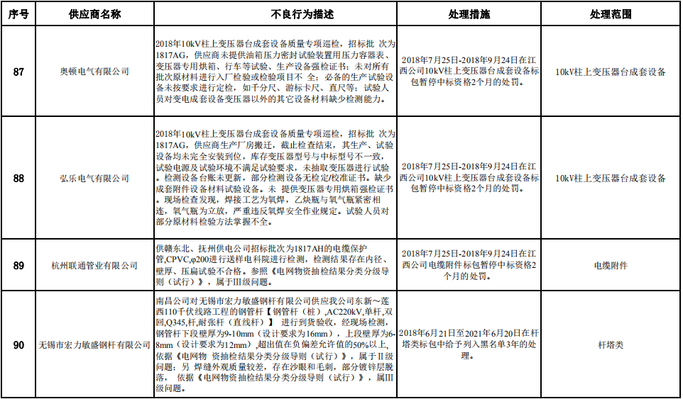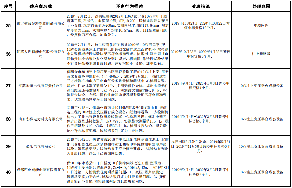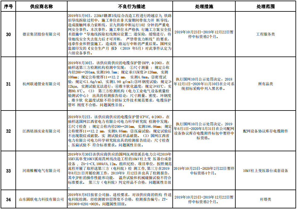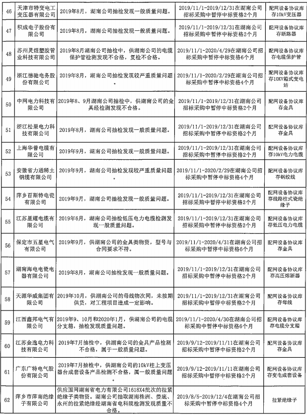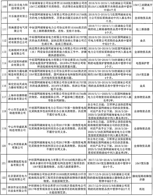四、国网湖南省电力有限公司关于供应商不良行为处理情况的通报(2020年3月)