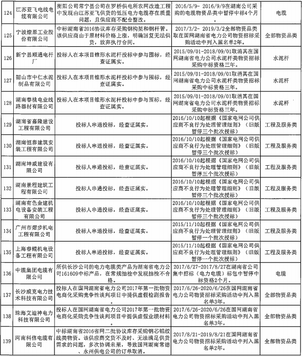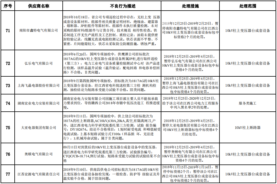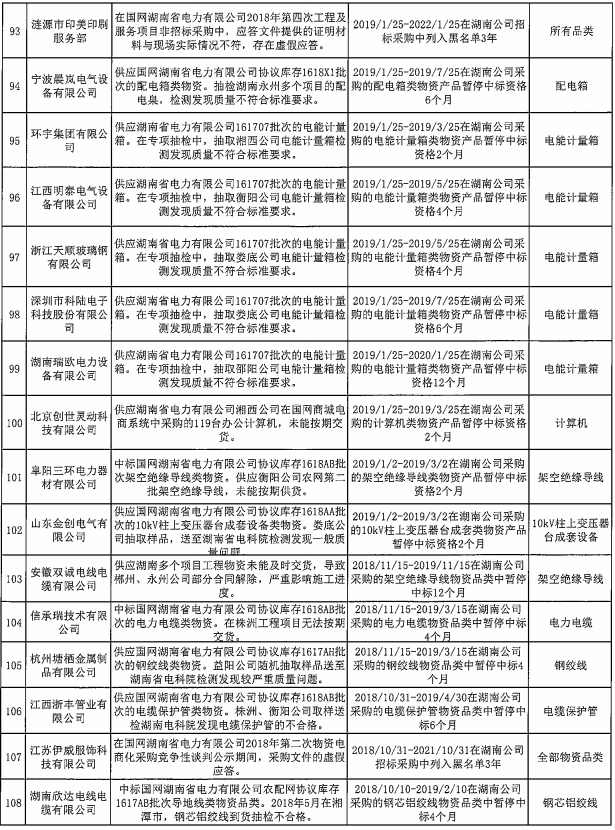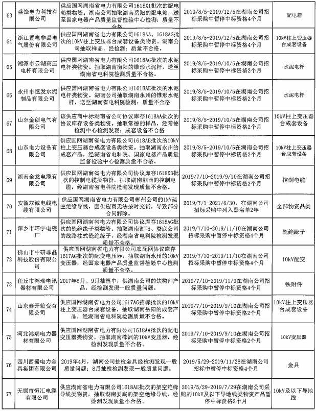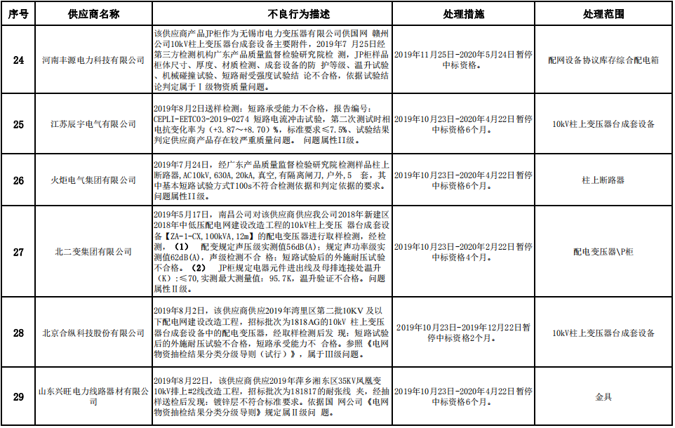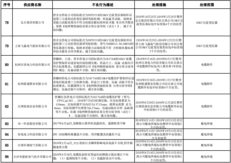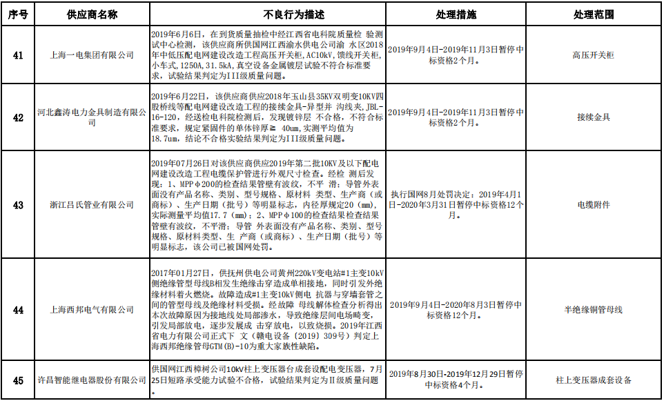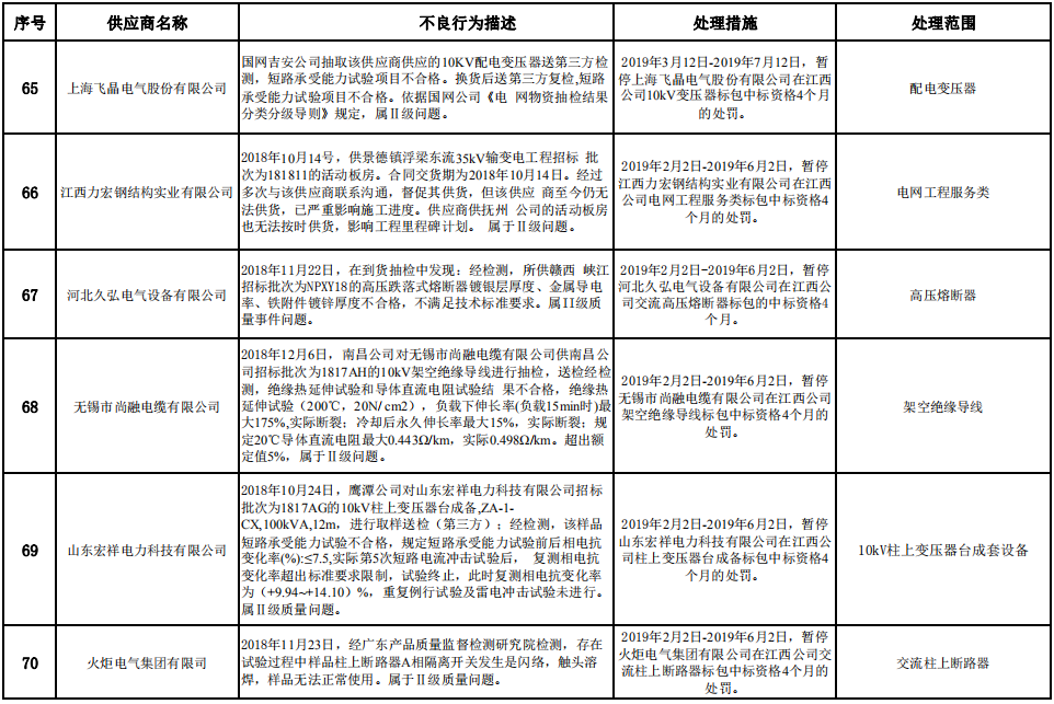 四、国网湖南省电力有限公司关于供应商不良行为处理情况的通报(2020年3月)