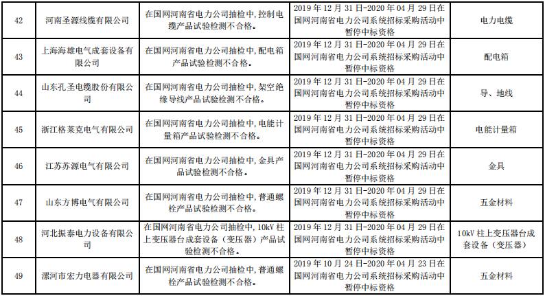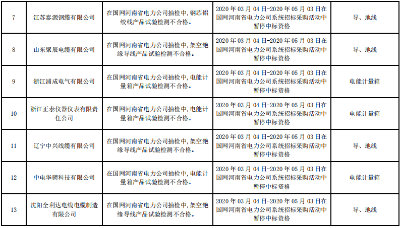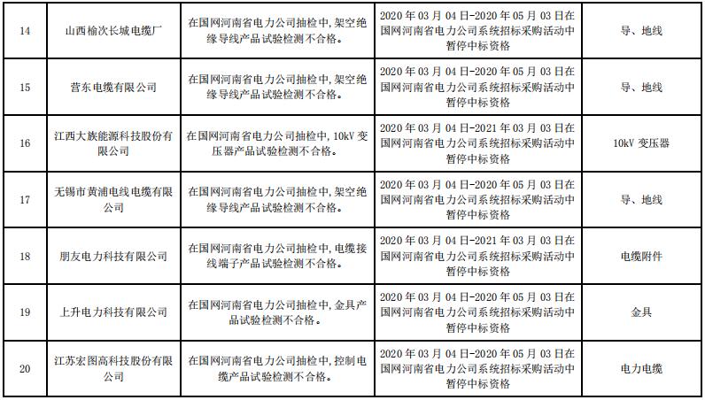 电线电缆网 > 行业资讯 > 2020年3月份国家电网“黑名单”汇总,哪些企业中招了?(完整版)