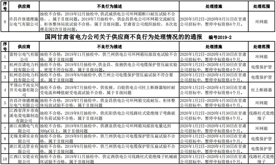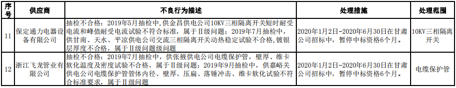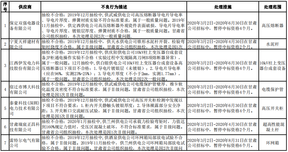 六、国网甘肃省电力公司关于供应商不良行为处理的公告(2020年2月)