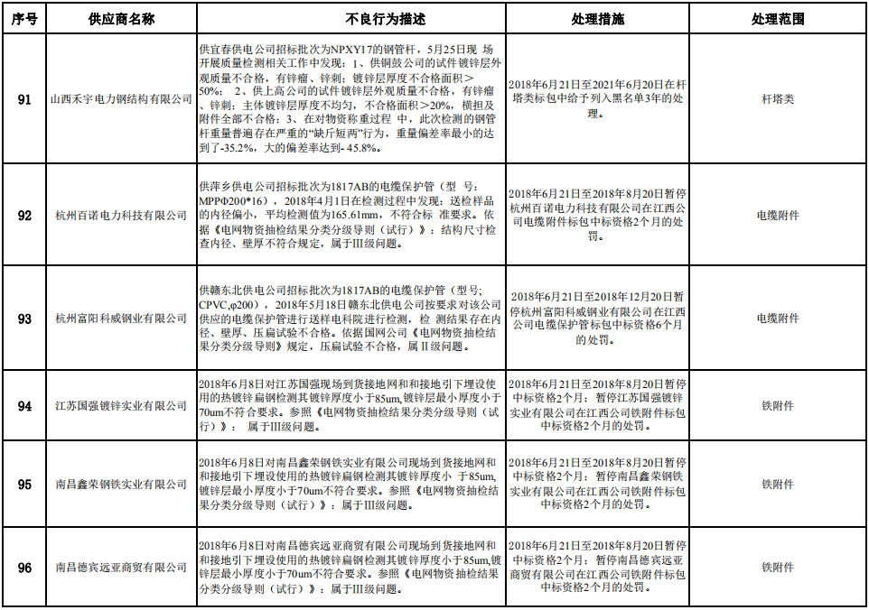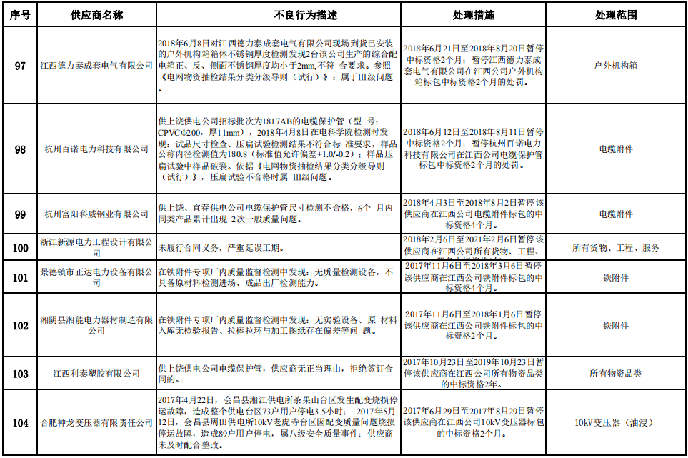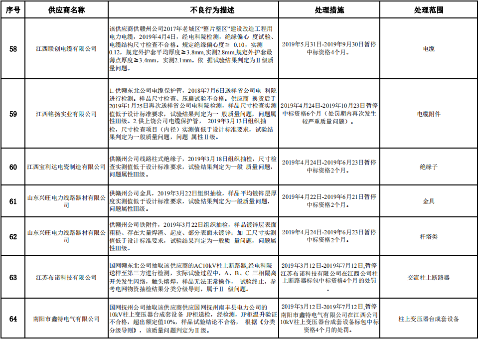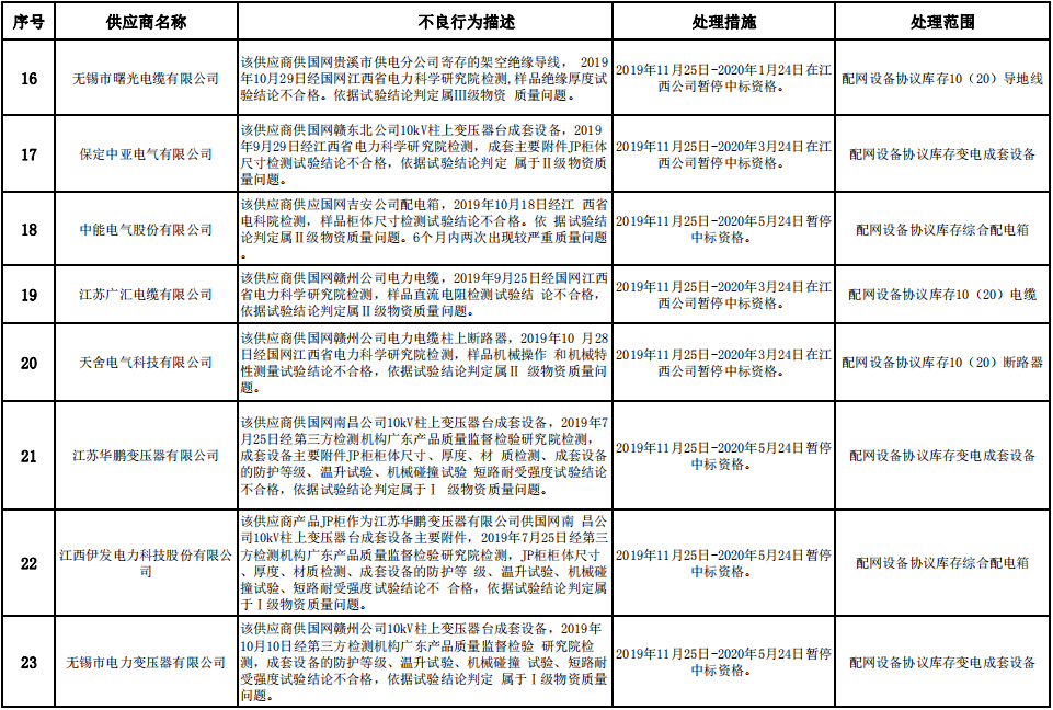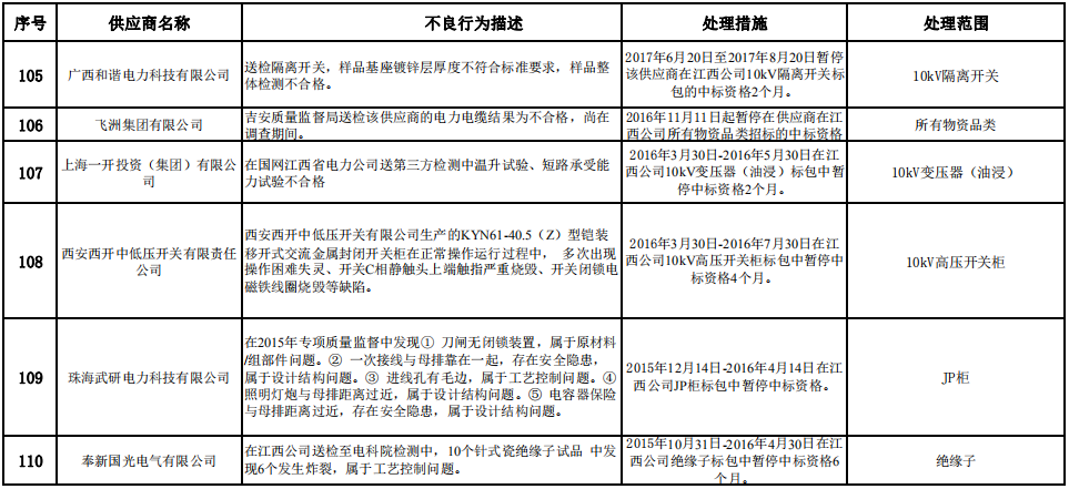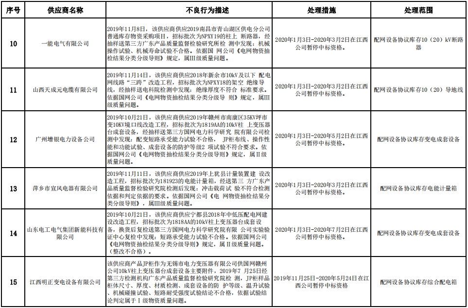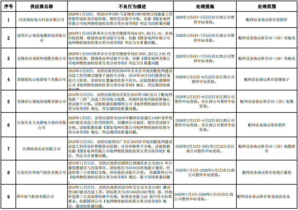七、国网江西省电力有限公司关于供应商不良行为处理情况的通报(2020年3月)