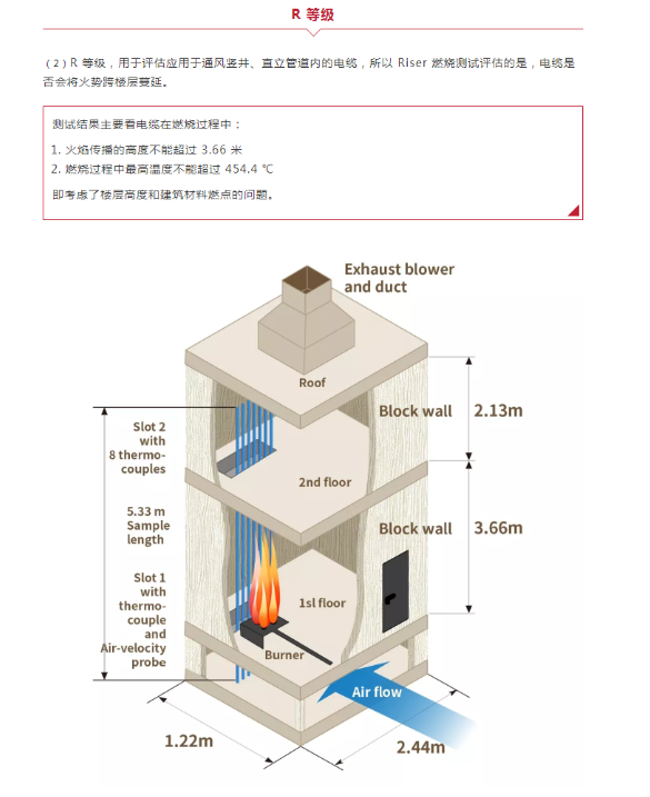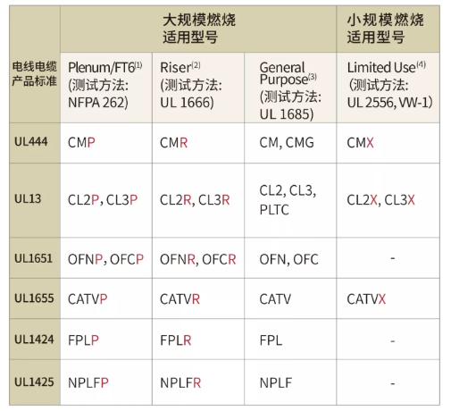 a, 网线UL444/光缆UL1651/功率线UL13/火灾报警线UL1424/天线UL1655/非功率限制火灾报警线UL1425等标准,这几类线材都会用到以上三种大型成束燃烧等级。